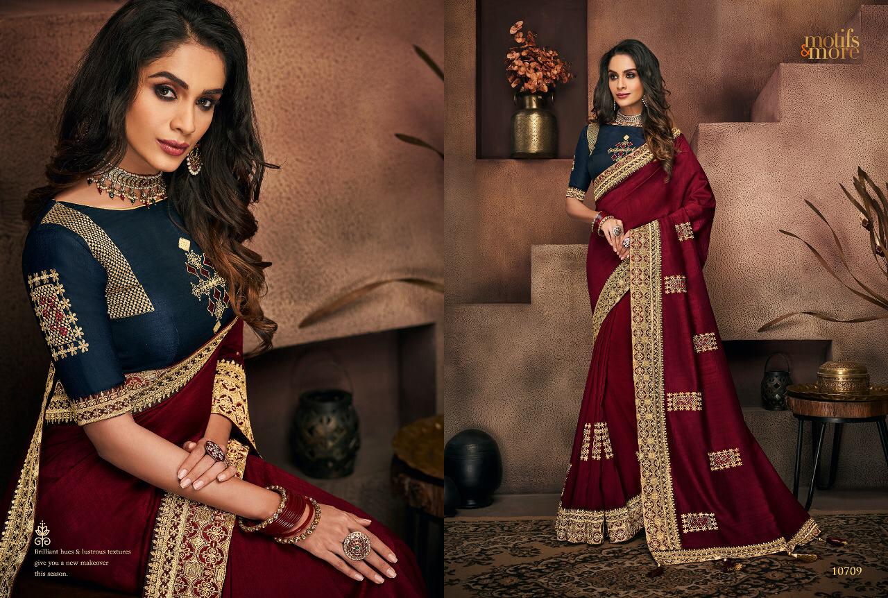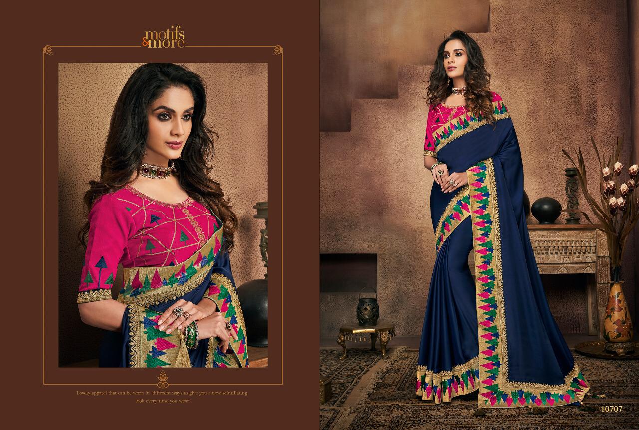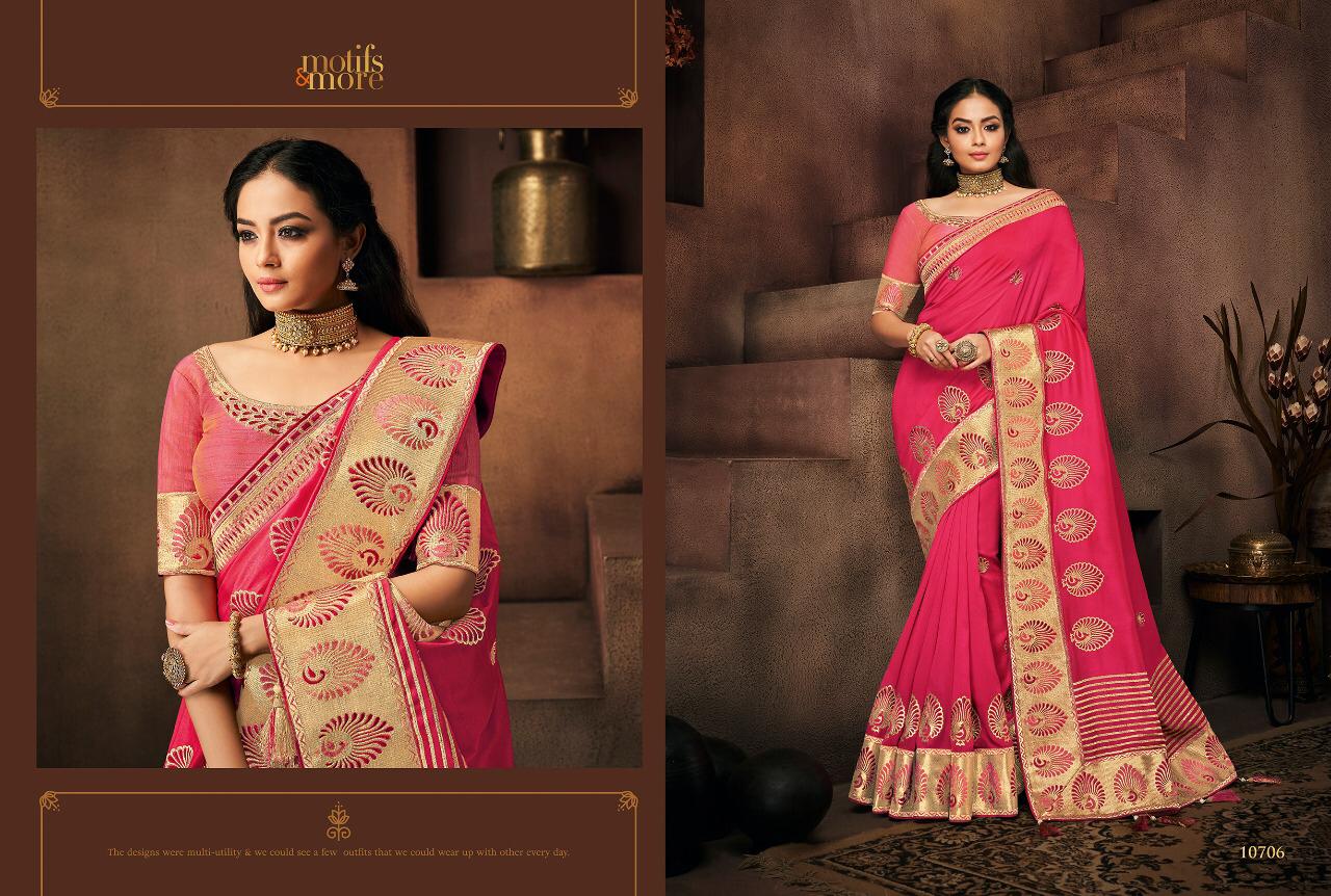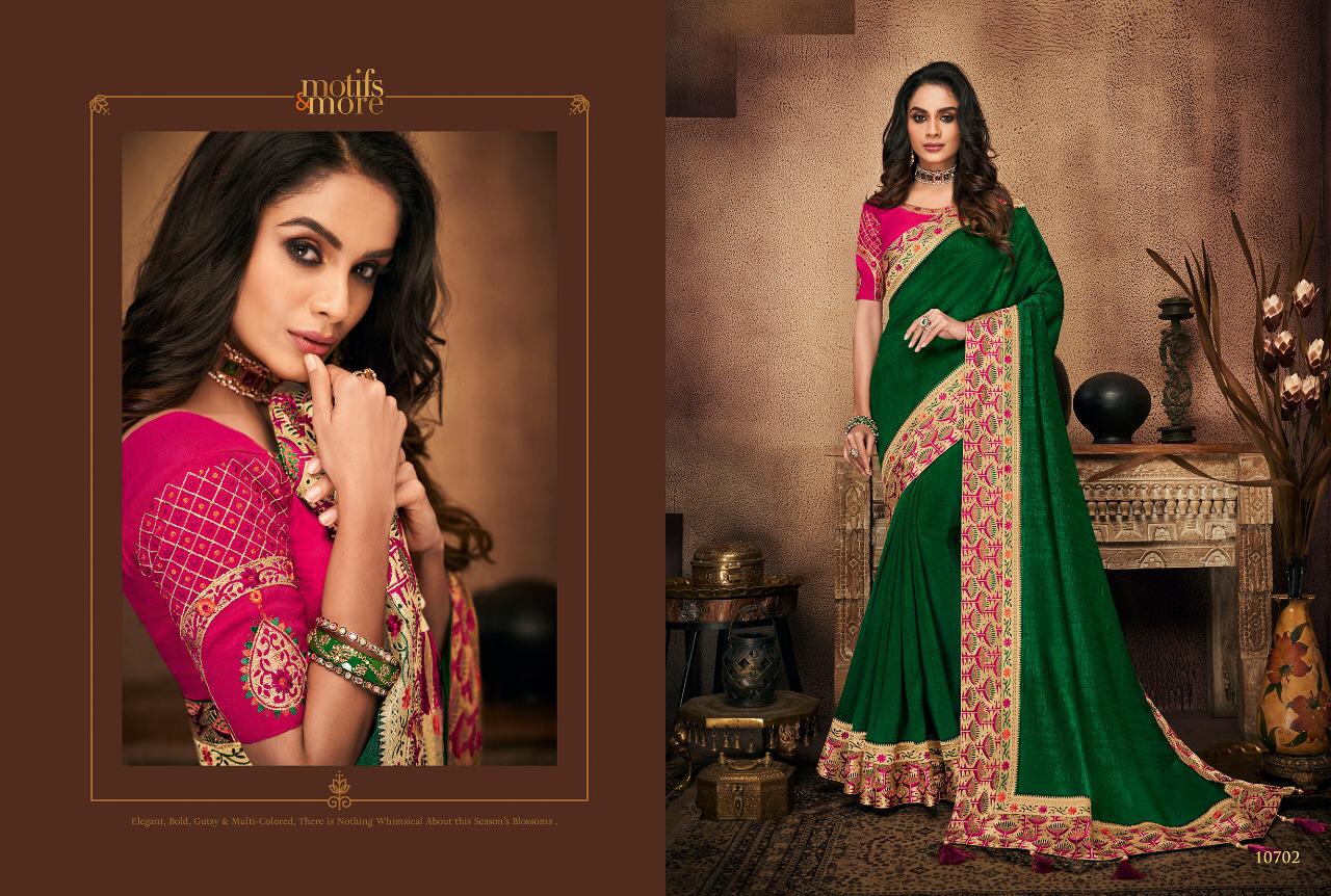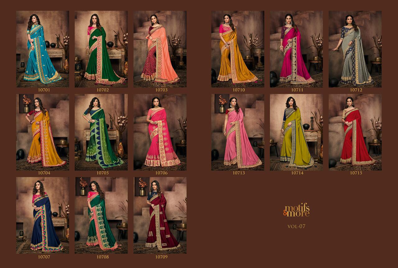 Motifs And More Vol 7 Series 10601 To 10716 Fancy Designer Party Wear Sarees Wholesale Supplier Gujarat