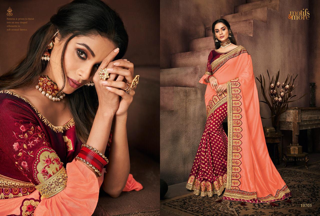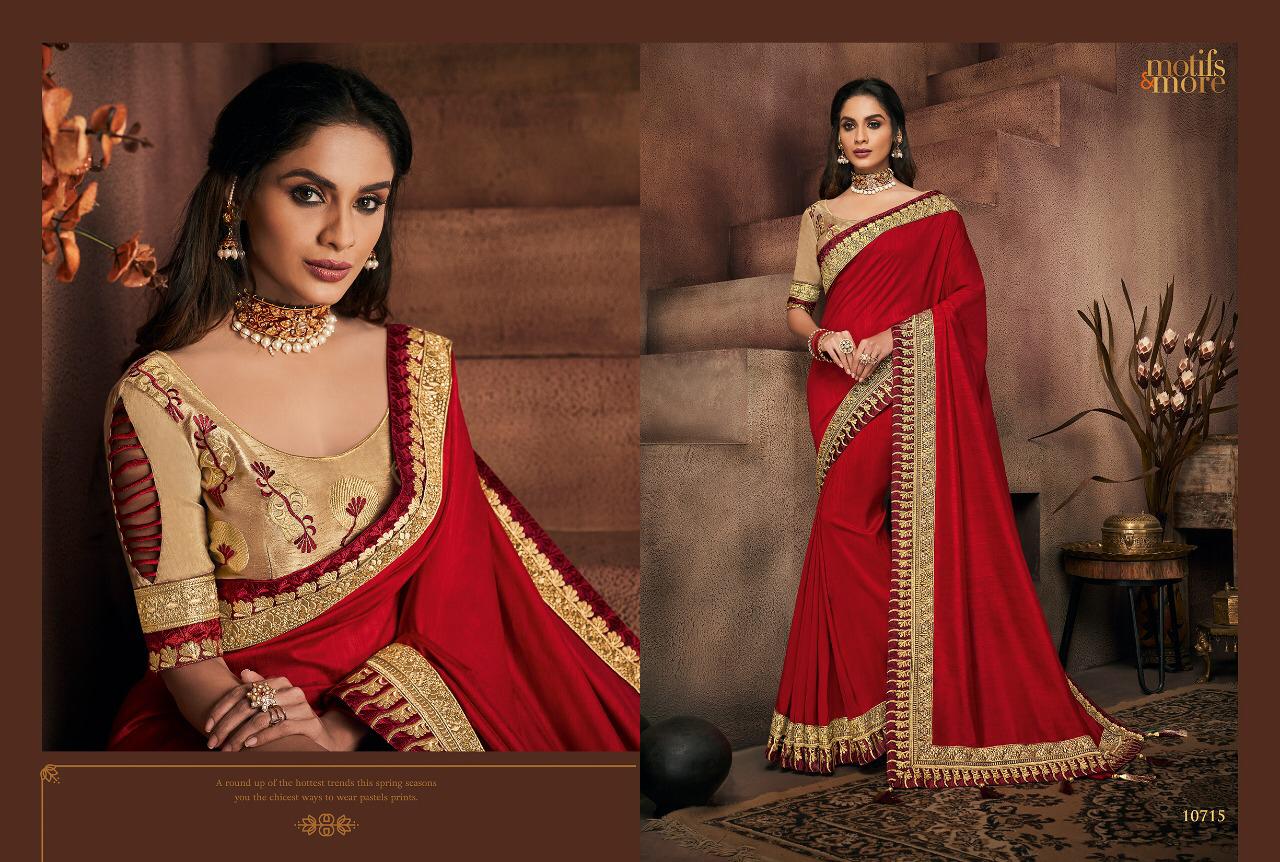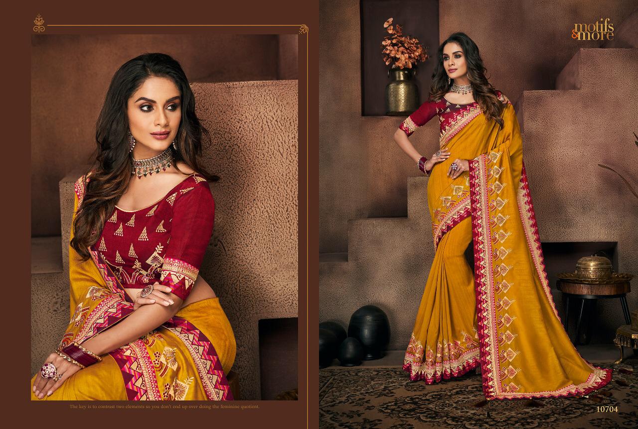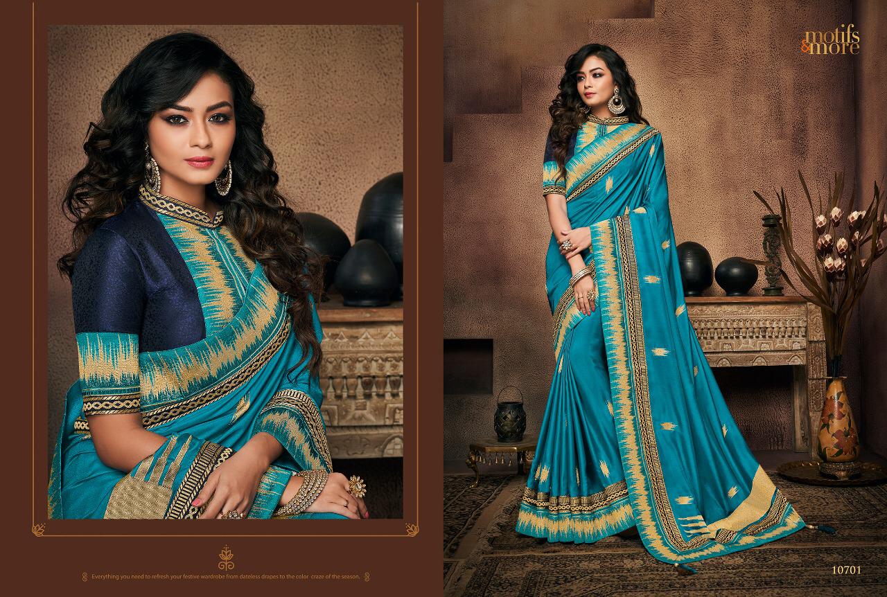 Buy Online Motifs And More Vol 7 Series 10601 To 10716 Fancy Designer Party Wear Sarees Wholesale Supplier Gujarat 16 Pcs of Full Catalogue at Wholesale Price. Looking for Motifs And More Vol 7 Series 10601 To 10716 Fancy Designer Party Wear Sarees Wholesale Supplier Gujarat Full Catalouge at Best Price? Buy Now Motifs And More Vol 7 Series 10601 To 10716 Fancy Designer Party Wear Sarees Wholesale Supplier Gujarat at Wholesale Rate of Rs 0 with Total 16 Pcs from authroized dealer and supplier of BRAND'S Brand. Cost of Each piece is just only Rs 0 which is very low and affordable price to resale the product in your retail store ,This is Surat based Wholesale Supplier & Dealer of BRAND'S Brand. Click on Brand name to Know more about BRAND'S Brand's products.Call or Whatsapp on 9898838984 for booking or enquiry