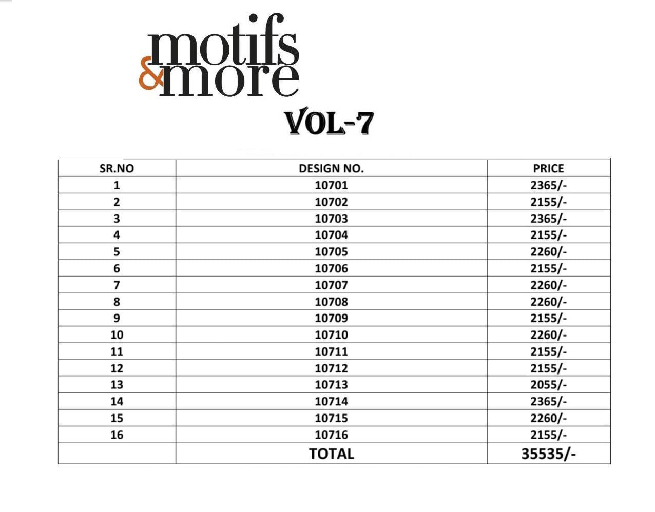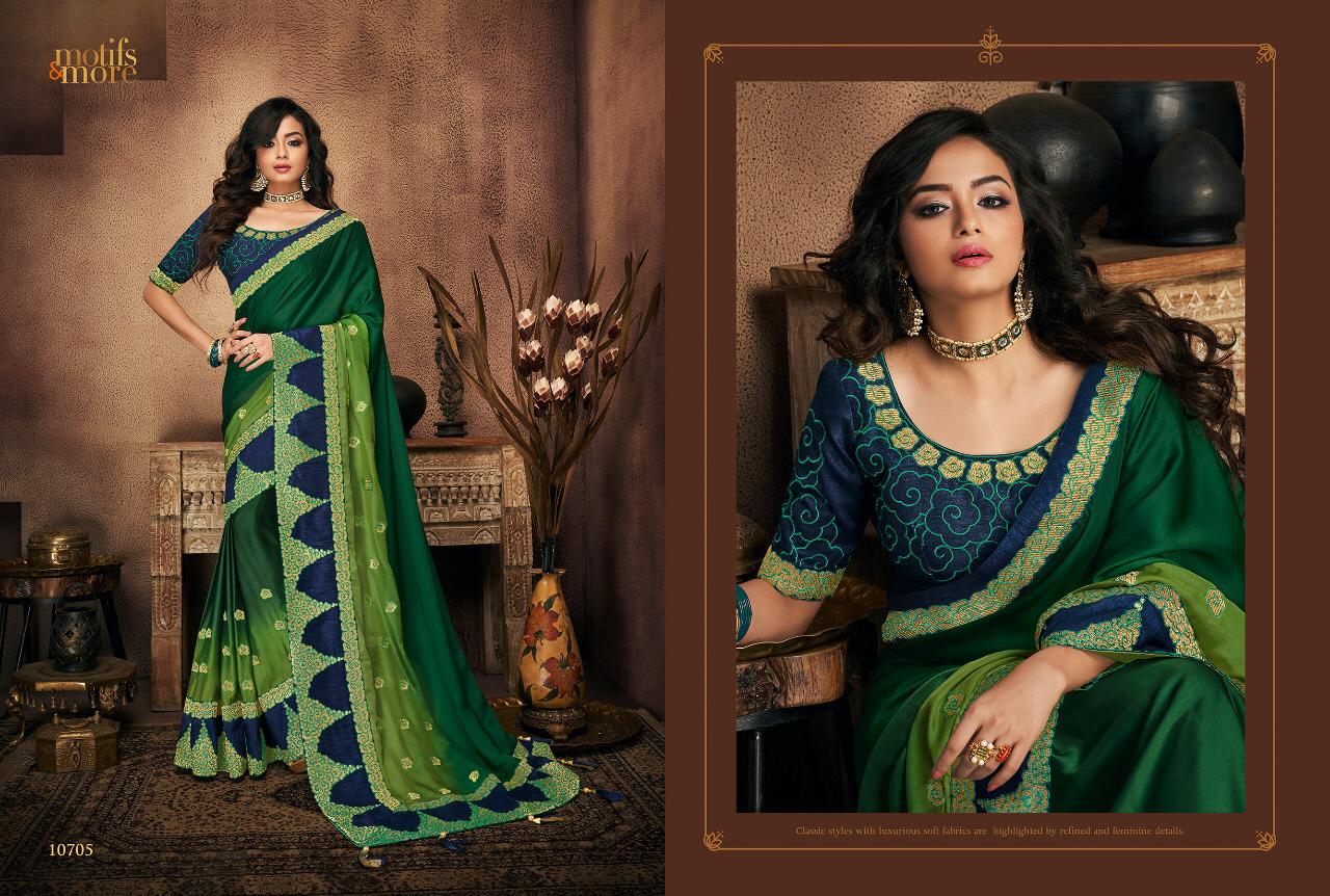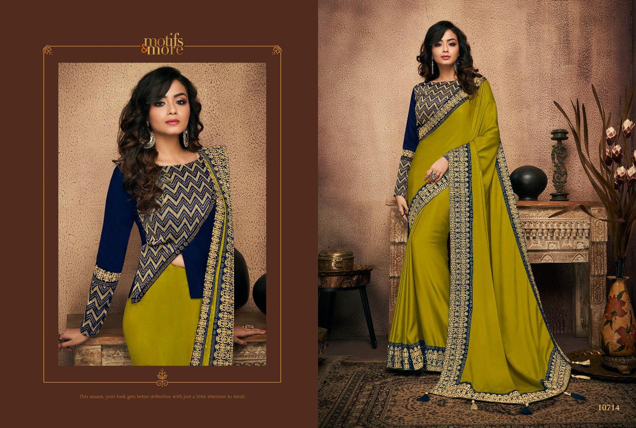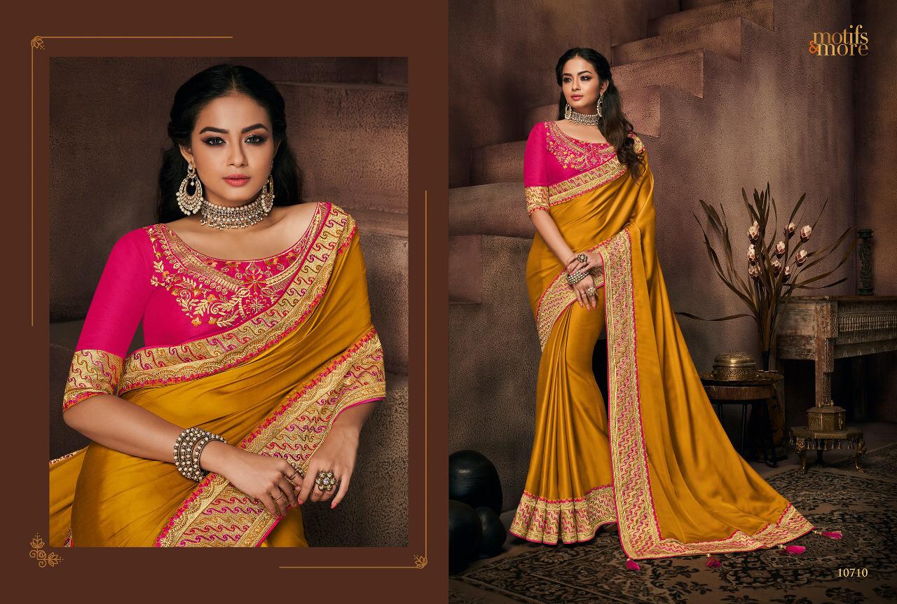 Buy Online Motifs And More Vol 7 Series 10601 To 10716 Fancy Designer Party Wear Sarees Wholesale Supplier Gujarat 16 Pcs of Full Catalogue at Wholesale Price. Looking for Motifs And More Vol 7 Series 10601 To 10716 Fancy Designer Party Wear Sarees Wholesale Supplier Gujarat Full Catalouge at Best Price? Buy Now Motifs And More Vol 7 Series 10601 To 10716 Fancy Designer Party Wear Sarees Wholesale Supplier Gujarat at Wholesale Rate of Rs 0 with Total 16 Pcs from authroized dealer and supplier of BRAND'S Brand. Cost of Each piece is just only Rs 0 which is very low and affordable price to resale the product in your retail store ,This is Surat based Wholesale Supplier & Dealer of BRAND'S Brand. Click on Brand name to Know more about BRAND'S Brand's products.Call or Whatsapp on 9898838984 for booking or enquiry
