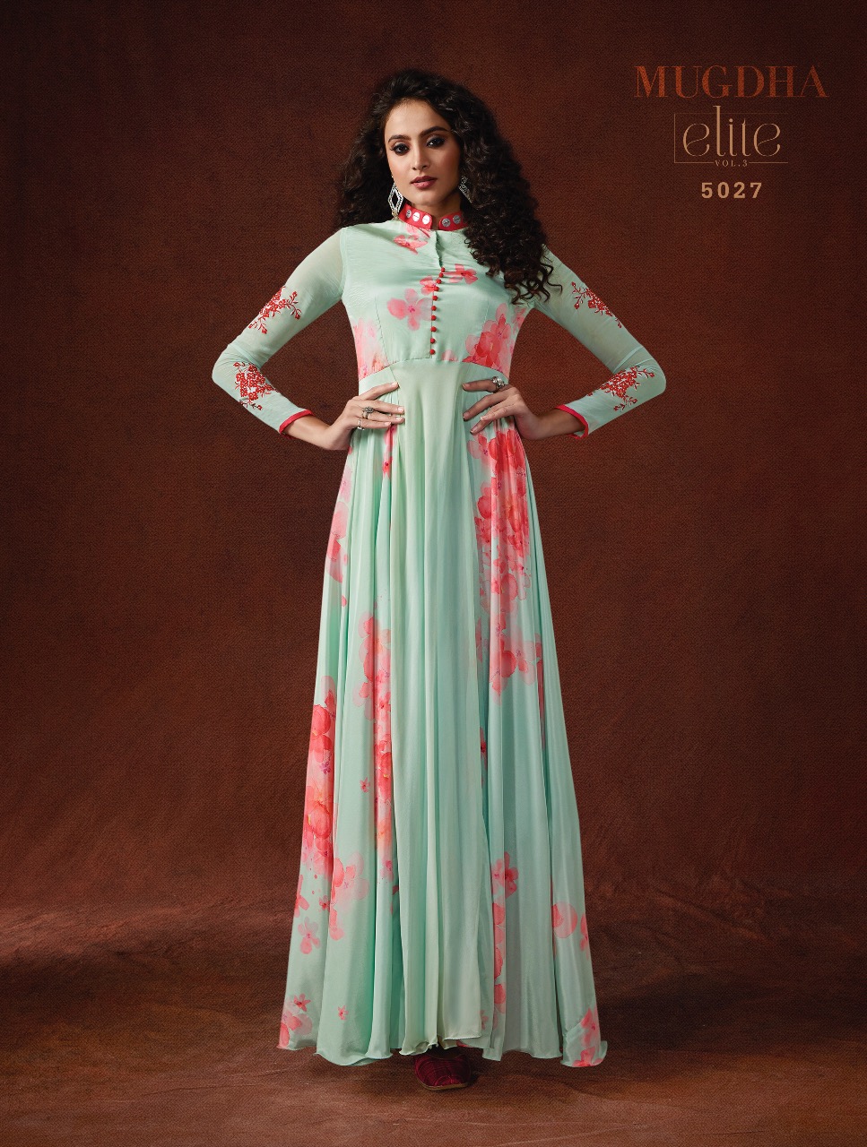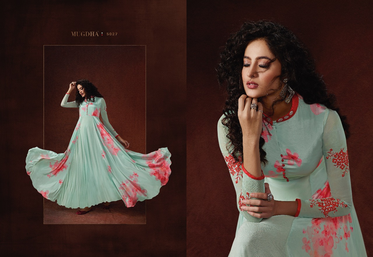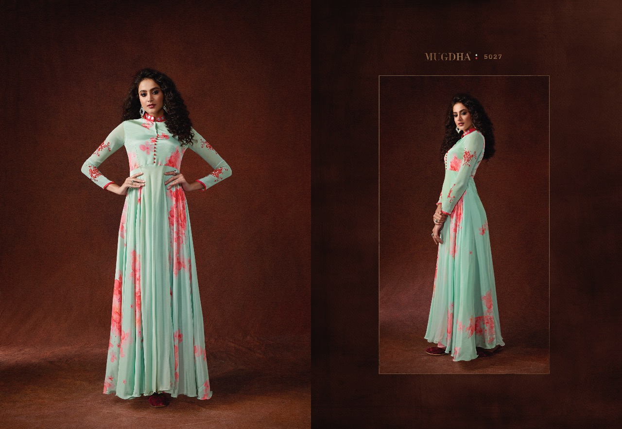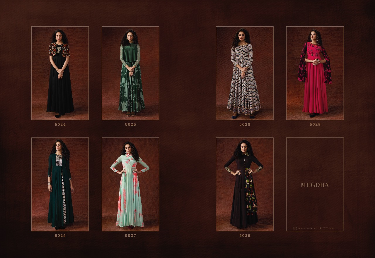 Mugdha Elite Vol 3 Series 5024 To 5030 Designer Ready To Wear Gowns Set Nd Single Wholesale Supplier Gujarat