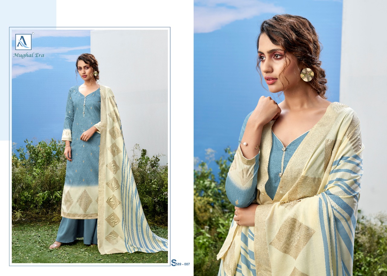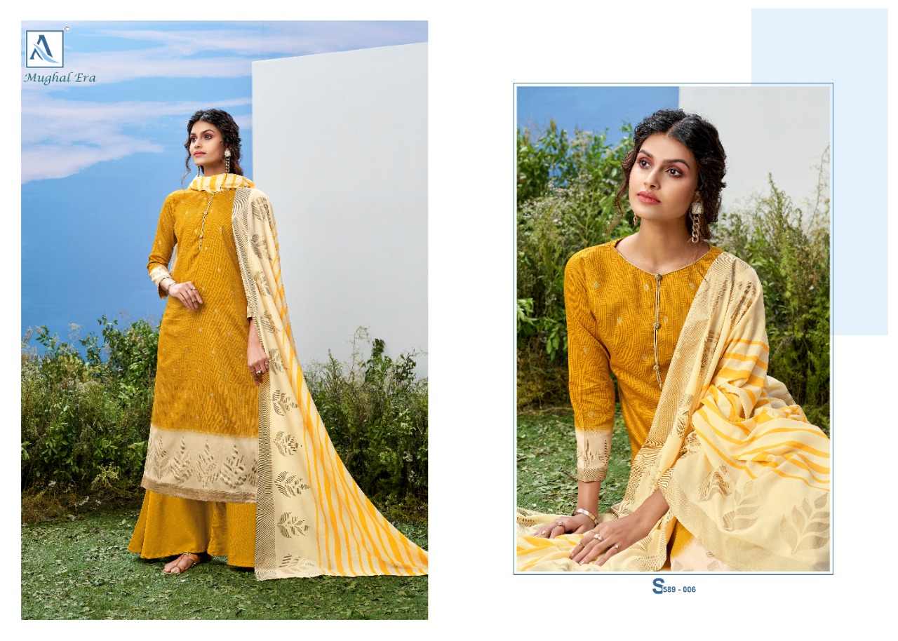 Buy Online Mughal Era By Alok Suit Manufacturer And Dealer From All Over India 10 Pcs of Full Catalogue at Wholesale Price. Looking for Mughal Era By Alok Suit Manufacturer And Dealer From All Over India Full Catalouge at Best Price? Buy Now Mughal Era By Alok Suit Manufacturer And Dealer From All Over India at Wholesale Rate of Rs 5990 with Total 10 Pcs from authroized dealer and supplier of Brand. Cost of Each piece is just only Rs 599 which is very low and affordable price to resale the product in your retail store ,This is Surat based Wholesale Supplier & Dealer of Brand. Click on Brand name to Know more about Brand's products.Call or Whatsapp on 9898838984 for booking or enquiry