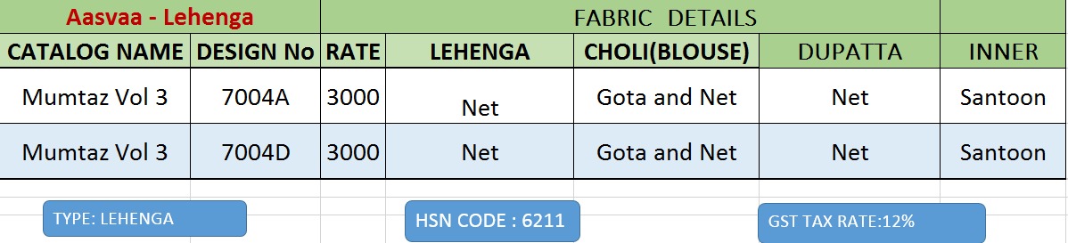 Buy Online Mumtaz Vol 3 By Aasvaa Designer Wedding Wear Occasion Wear Lehngas Wholesale Supplier And Dealer Nityanx India 2 Pcs of Full Catalogue at Wholesale Price. Looking for Mumtaz Vol 3 By Aasvaa Designer Wedding Wear Occasion Wear Lehngas Wholesale Supplier And Dealer Nityanx India Full Catalouge at Best Price? Buy Now Mumtaz Vol 3 By Aasvaa Designer Wedding Wear Occasion Wear Lehngas Wholesale Supplier And Dealer Nityanx India at Wholesale Rate of Rs 6000 with Total 2 Pcs from authroized dealer and supplier of Brand. Cost of Each piece is just only Rs 3000 which is very low and affordable price to resale the product in your retail store ,This is Surat based Wholesale Supplier & Dealer of Brand. Click on Brand name to Know more about Brand's products.Call or Whatsapp on 9898838984 for booking or enquiry