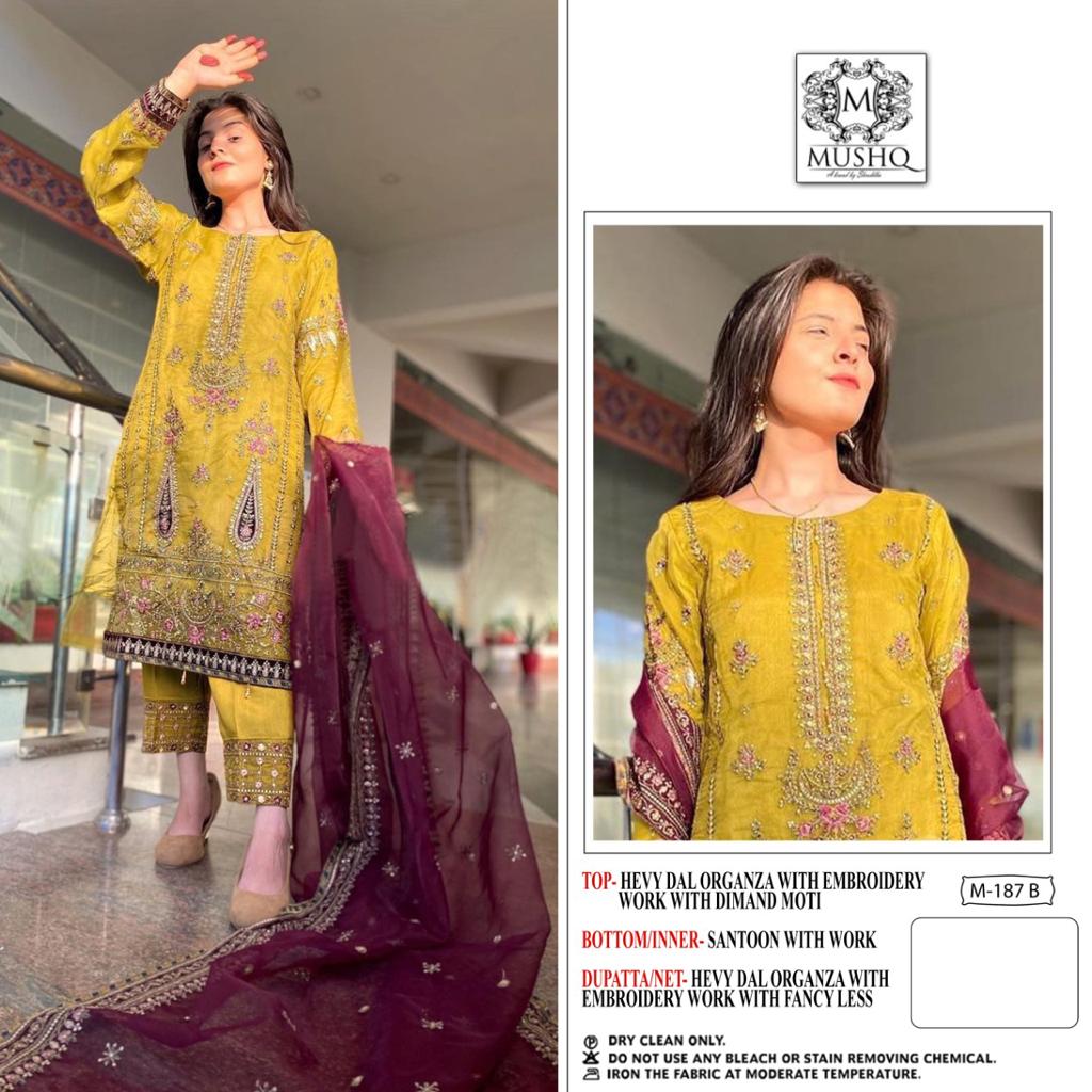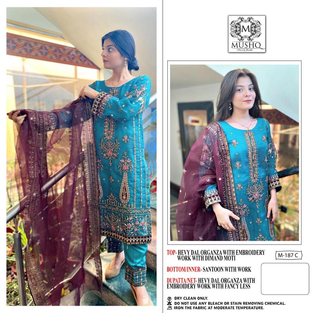 Buy Online Mushq By Shraddha D No M 187 Pure Organza Embroidered Collection Dealer From India 3 Pcs of Full Catalogue at Wholesale Price. Looking for Mushq By Shraddha D No M 187 Pure Organza Embroidered Collection Dealer From India Full Catalouge at Best Price? Buy Now Mushq By Shraddha D No M 187 Pure Organza Embroidered Collection Dealer From India at Wholesale Rate of Rs 3597 with Total 3 Pcs from authroized dealer and supplier of Brand. Cost of Each piece is just only Rs 1199 which is very low and affordable price to resale the product in your retail store ,This is Surat based Wholesale Supplier & Dealer of Brand. Click on Brand name to Know more about Brand's products.Call or Whatsapp on 9898838984 for booking or enquiry