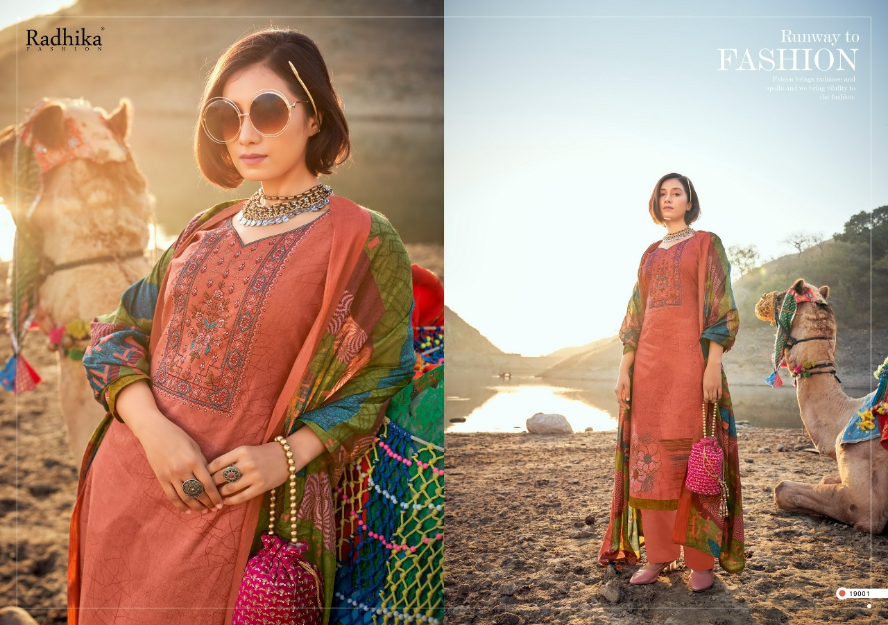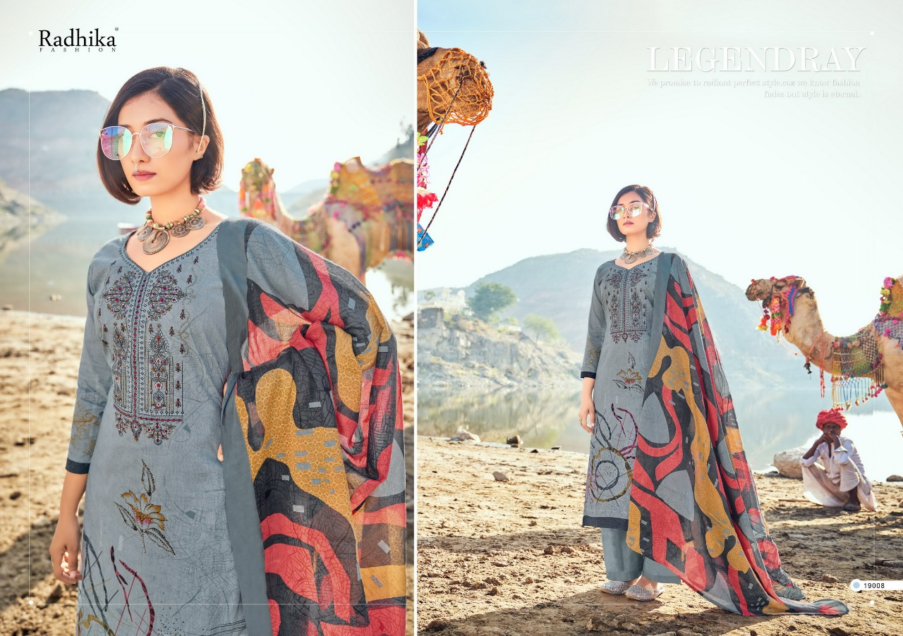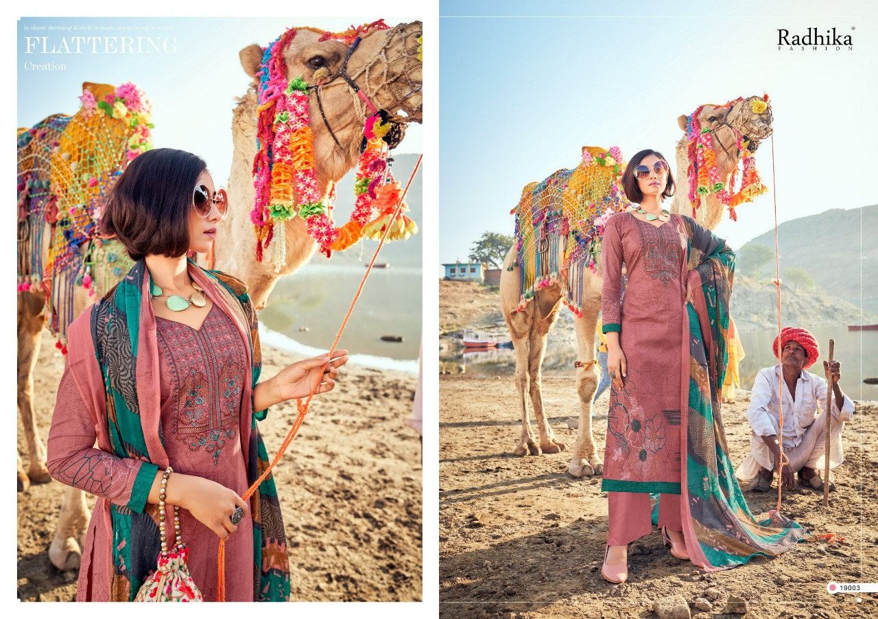 _*............Azara...........*_ _presents_ *Â?mussaret vol-17Â?* ?Top: Pure camric cotton designer prints with kashmiri embroidery & mashin diamond ?Dupatta: cotton mal print ?Bottom: sami lawn cotton ?Pcs: 8 Rate 680/- per pcs Set to set Your trust is our capital *Radhika fashion* |