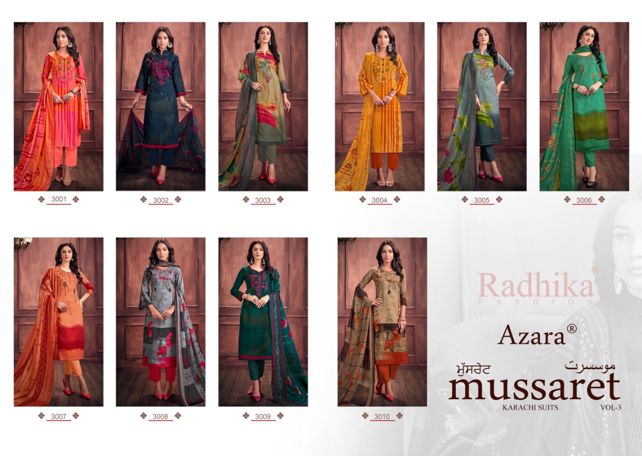 Mussaret Vol 3 By Azara 3001 Series Fancy Cotton Printed Salwar Kameez Catlog Wholesale Dealer Surat