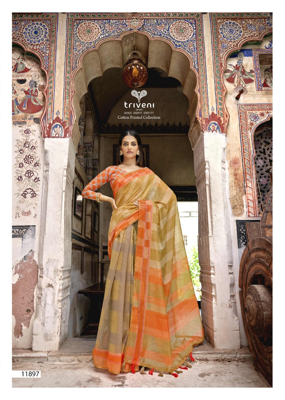 *Triveni Sarees* Catalogue - *Muze 3* Fabric - *Cotton Linen Print* Rate - *Wsr - 631* per pcs Set to set Delivery from today |