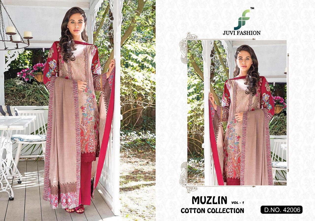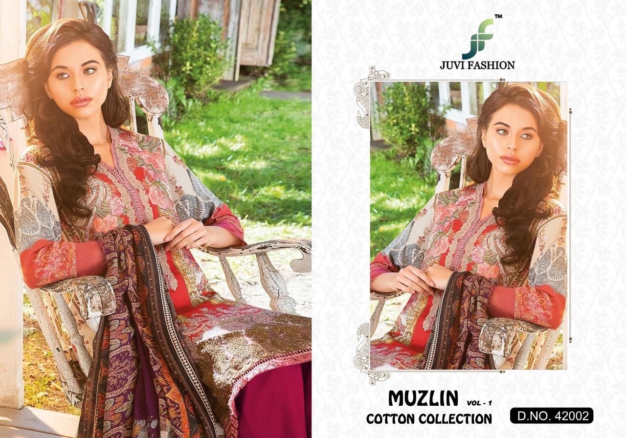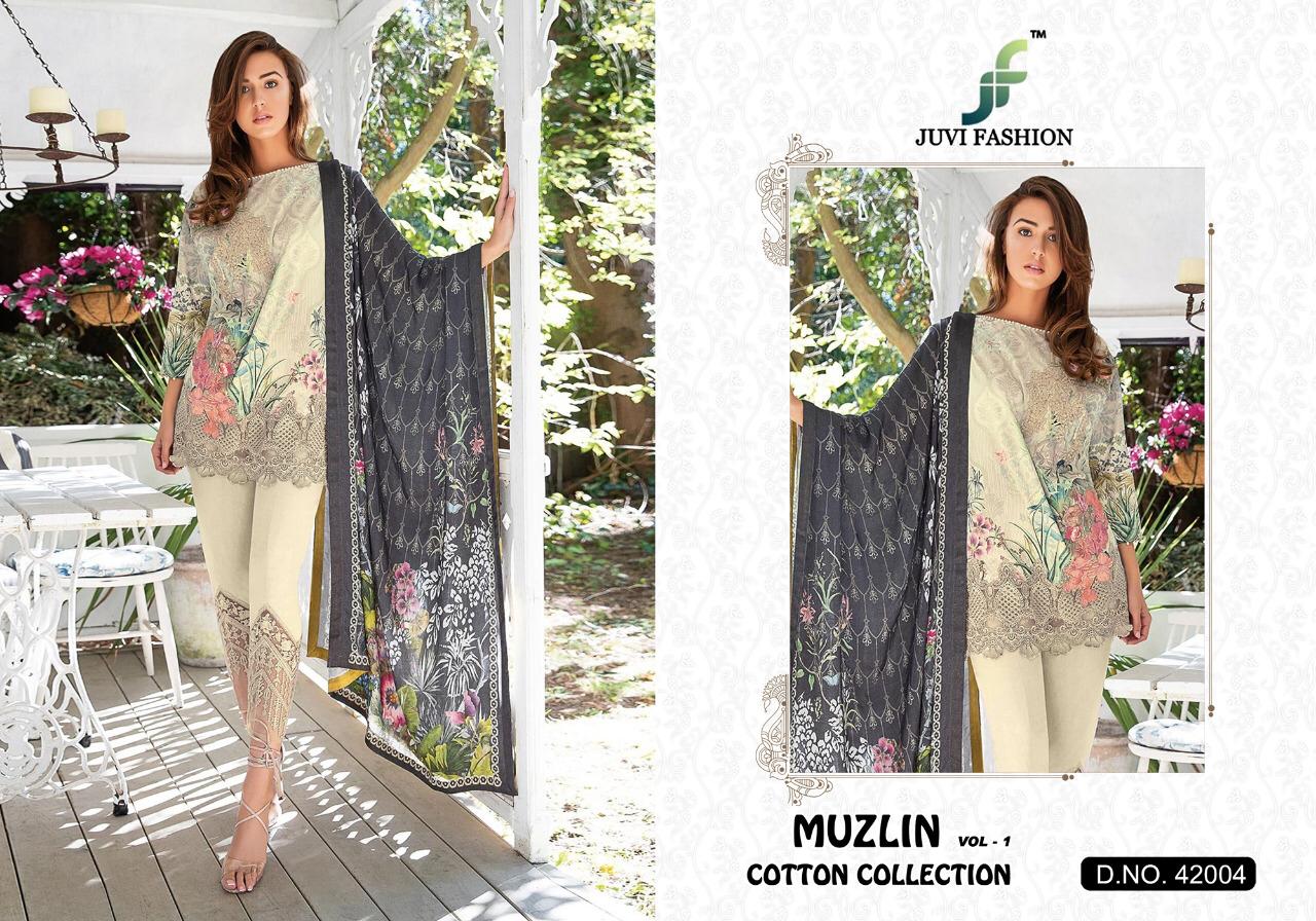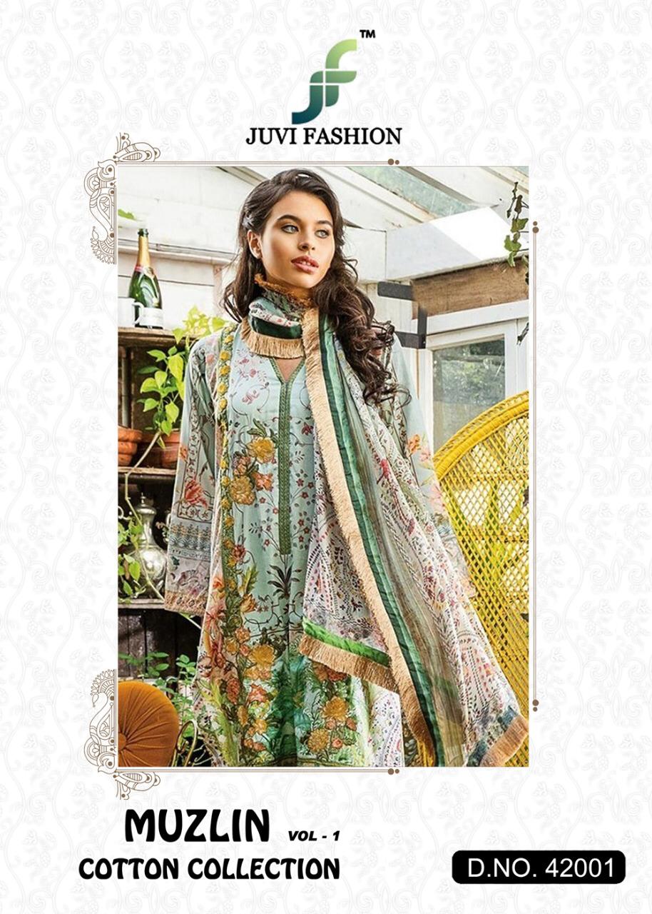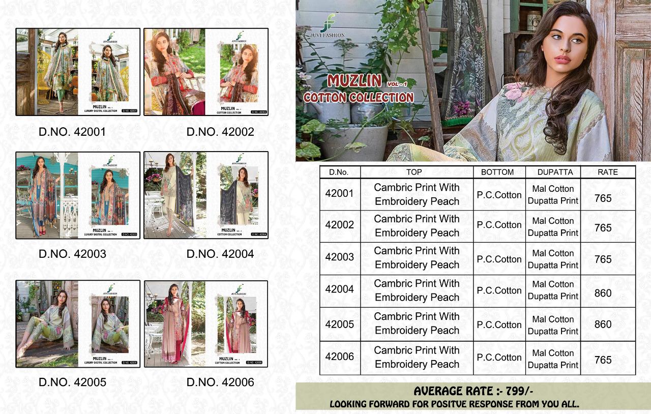 Buy Online Muzlin Vol 1 By Juvi Fashion 42001 To 42006 Pakistani Suits Wholesale Supplier Gujarat 6 Pcs of Full Catalogue at Wholesale Price. Looking for Muzlin Vol 1 By Juvi Fashion 42001 To 42006 Pakistani Suits Wholesale Supplier Gujarat Full Catalouge at Best Price? Buy Now Muzlin Vol 1 By Juvi Fashion 42001 To 42006 Pakistani Suits Wholesale Supplier Gujarat at Wholesale Rate of Rs 4794 with Total 6 Pcs from authroized dealer and supplier of Brand. Cost of Each piece is just only Rs 799 which is very low and affordable price to resale the product in your retail store ,This is Surat based Wholesale Supplier & Dealer of Brand. Click on Brand name to Know more about Brand's products.Call or Whatsapp on 9898838984 for booking or enquiry