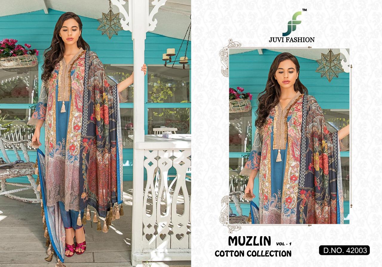Muzlin Vol 1 By Juvi Fashion 42001 To 42006 Pakistani Suits Wholesale Supplier Gujarat