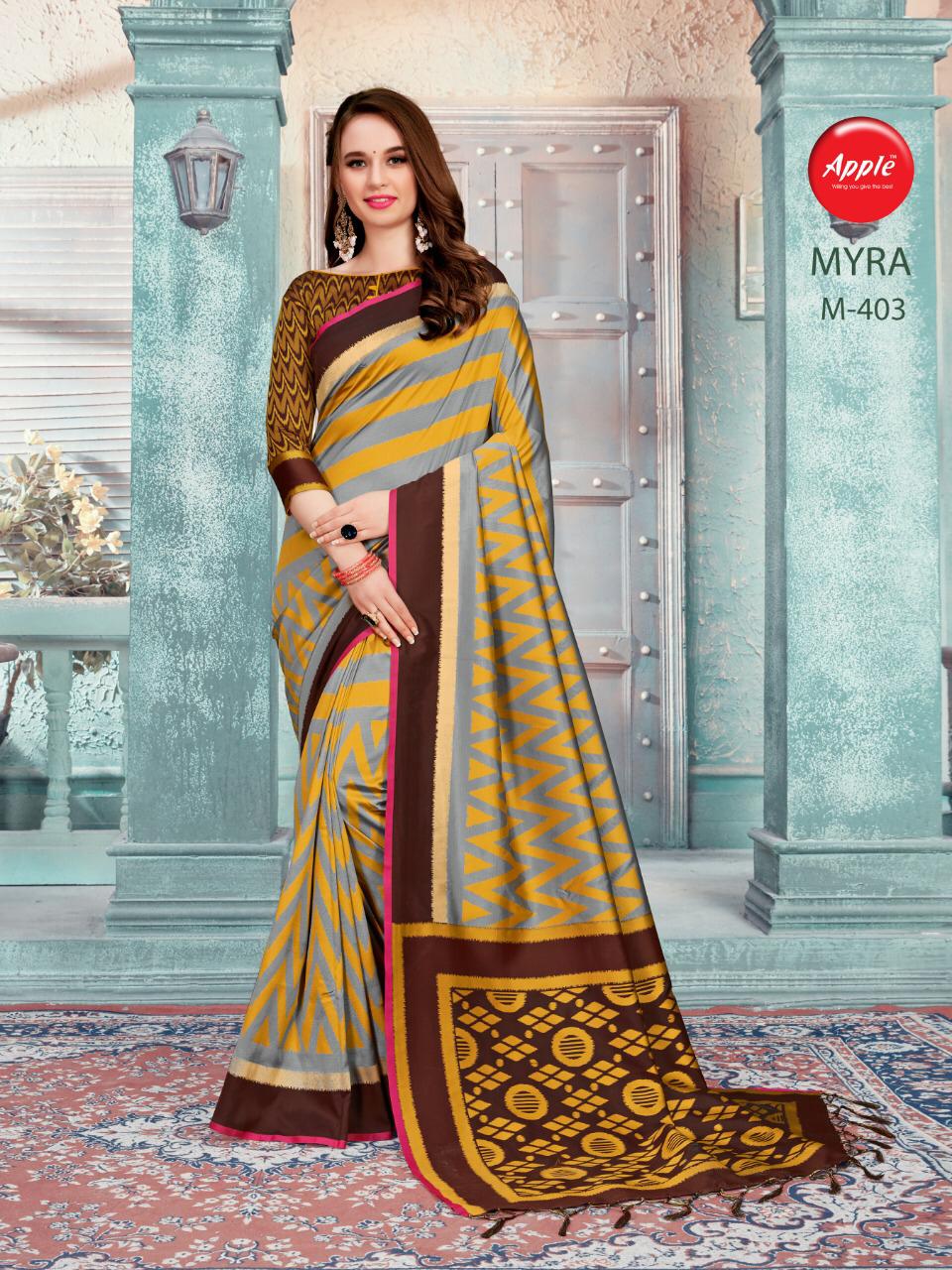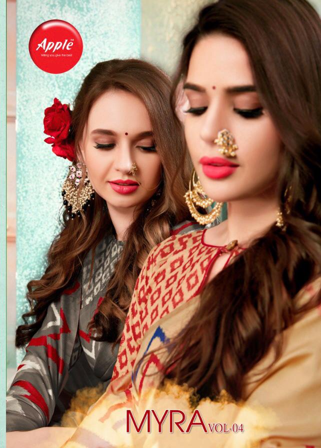 Buy Online Myra Vol 4 By Apple Silk Sarees Wholesale Supplier Gujarat 8 Pcs of Full Catalogue at Wholesale Price. Looking for Myra Vol 4 By Apple Silk Sarees Wholesale Supplier Gujarat Full Catalouge at Best Price? Buy Now Myra Vol 4 By Apple Silk Sarees Wholesale Supplier Gujarat at Wholesale Rate of Rs 8760 with Total 8 Pcs from authroized dealer and supplier of APPLE Brand. Cost of Each piece is just only Rs 1095 which is very low and affordable price to resale the product in your retail store ,This is Surat based Wholesale Supplier & Dealer of APPLE Brand. Click on Brand name to Know more about APPLE Brand's products.Call or Whatsapp on 9898838984 for booking or enquiry