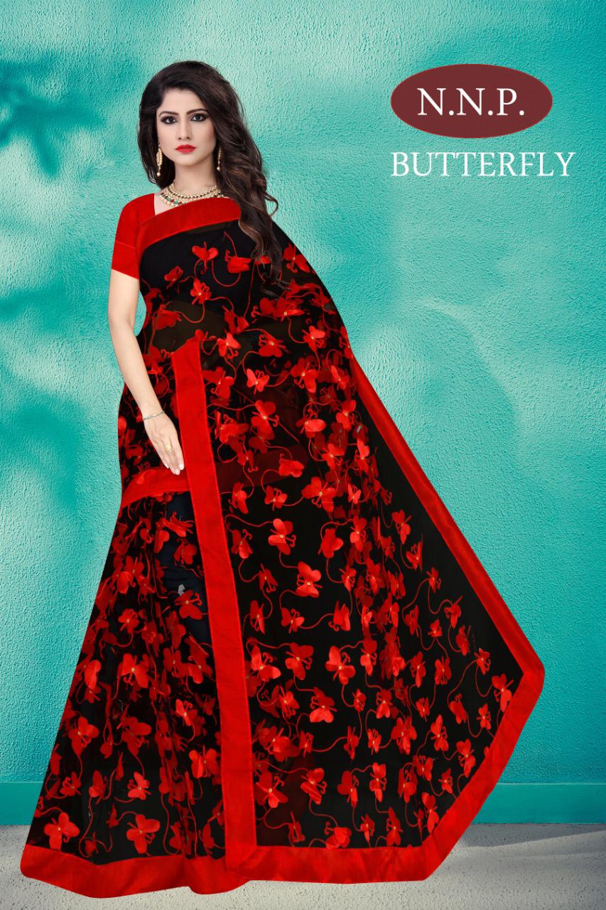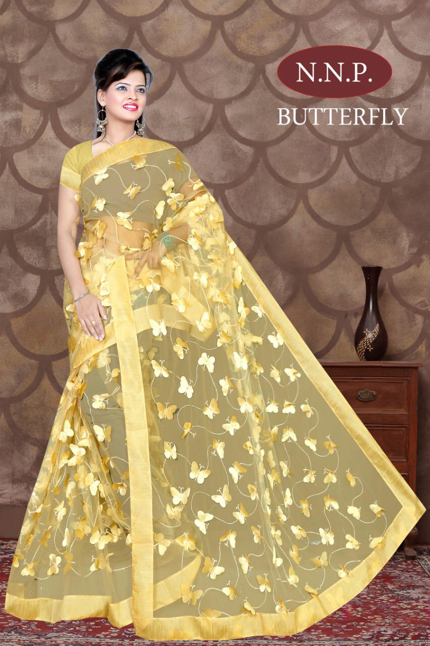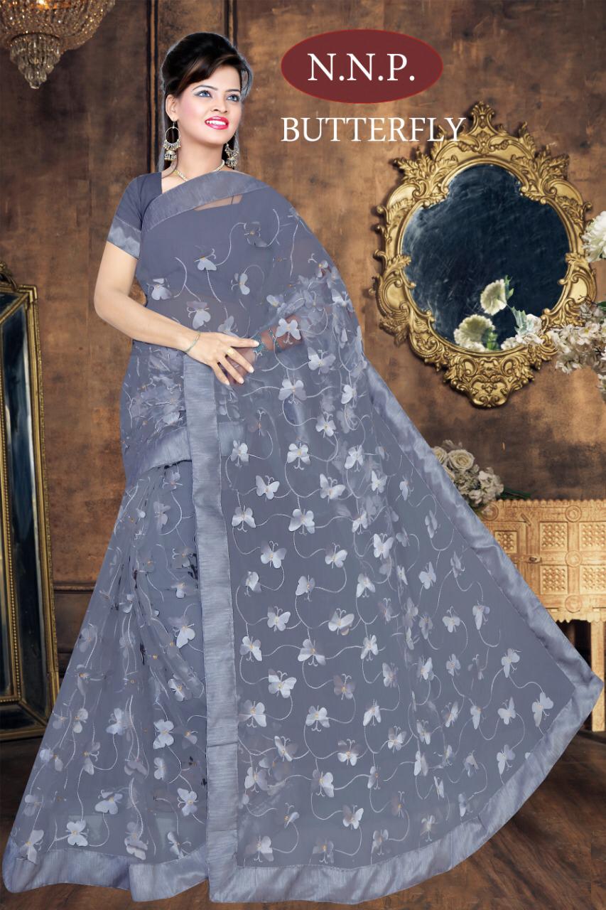 N N P Butterfly Net With Flower Work Sarees Set And Single Wholesale Supplier And Dealer Gujarat