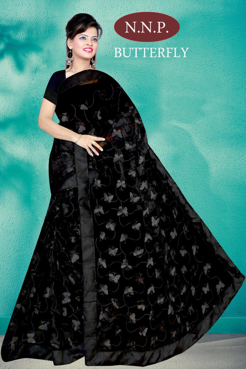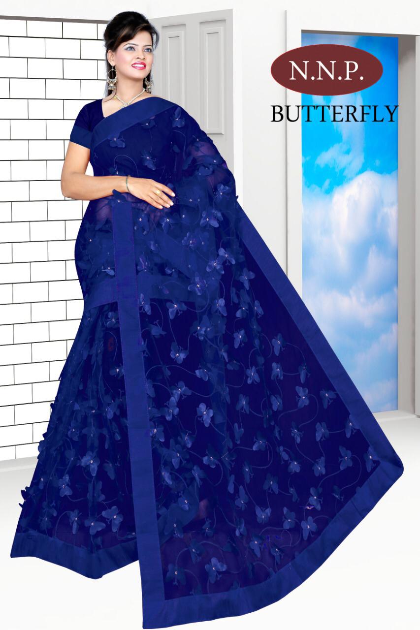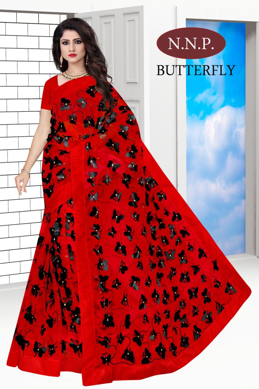 N N P Butterfly Net With Flower Work Sarees Set And Single Wholesale Supplier And Dealer Gujarat