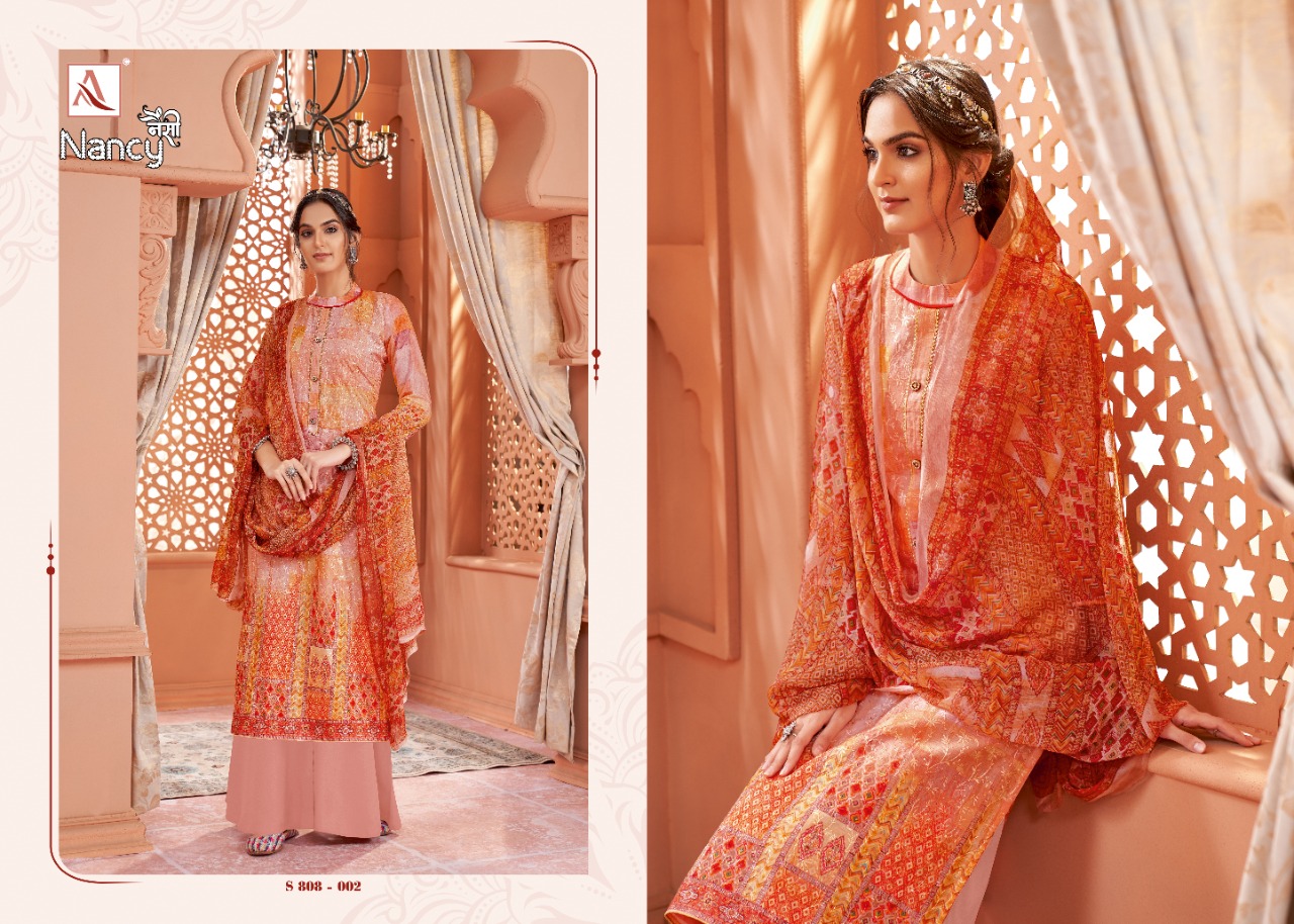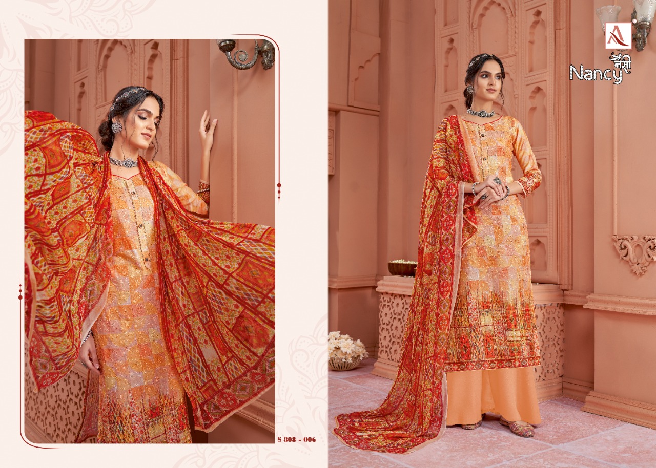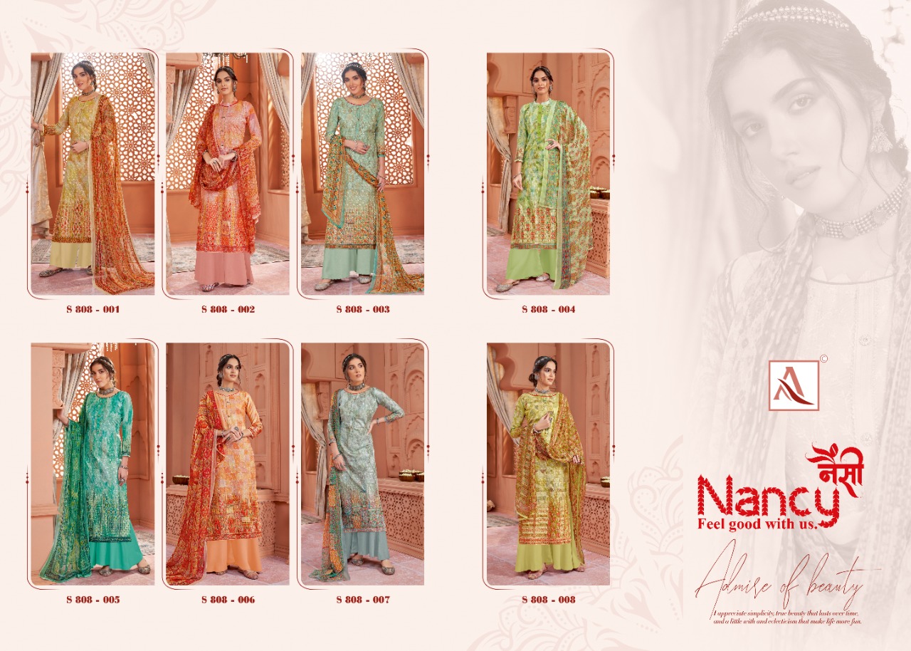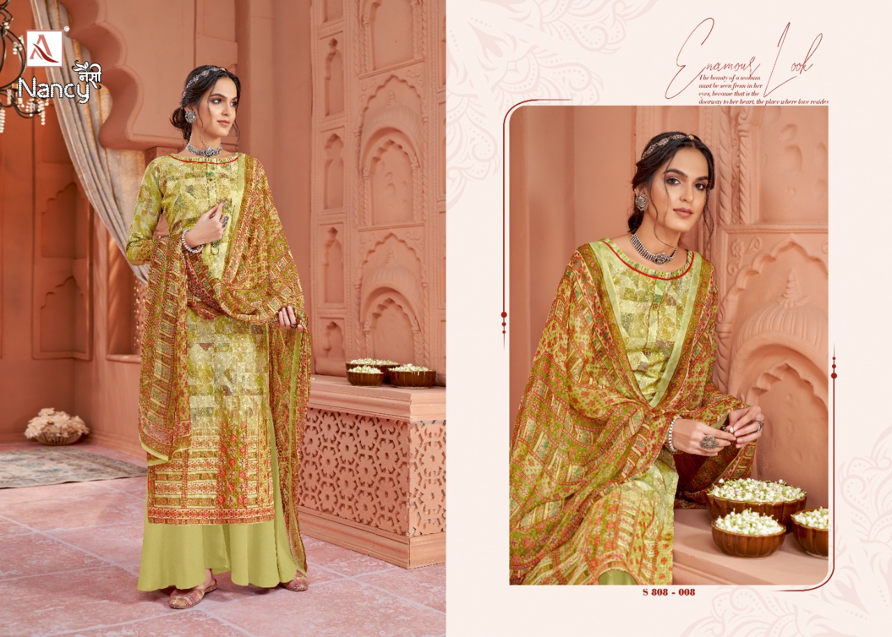 Buy Online Nancy By Alok Suit Wholesale Supplier Traders In Surat 8 Pcs of Full Catalogue at Wholesale Price. Looking for Nancy By Alok Suit Wholesale Supplier Traders In Surat Full Catalouge at Best Price? Buy Now Nancy By Alok Suit Wholesale Supplier Traders In Surat at Wholesale Rate of Rs 7288 with Total 8 Pcs from authroized dealer and supplier of Brand. Cost of Each piece is just only Rs 911 which is very low and affordable price to resale the product in your retail store ,This is Surat based Wholesale Supplier & Dealer of Brand. Click on Brand name to Know more about Brand's products.Call or Whatsapp on 9898838984 for booking or enquiry