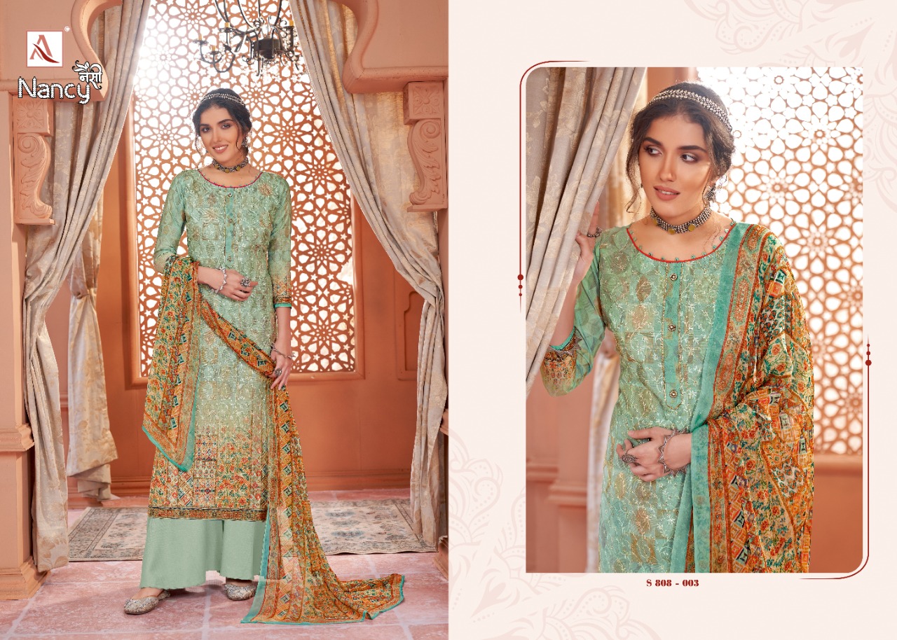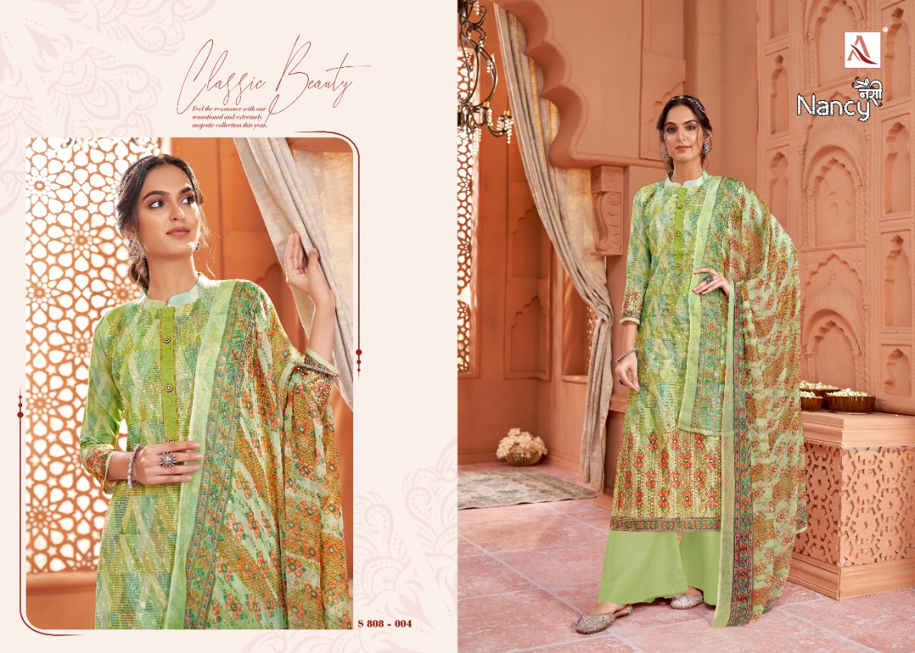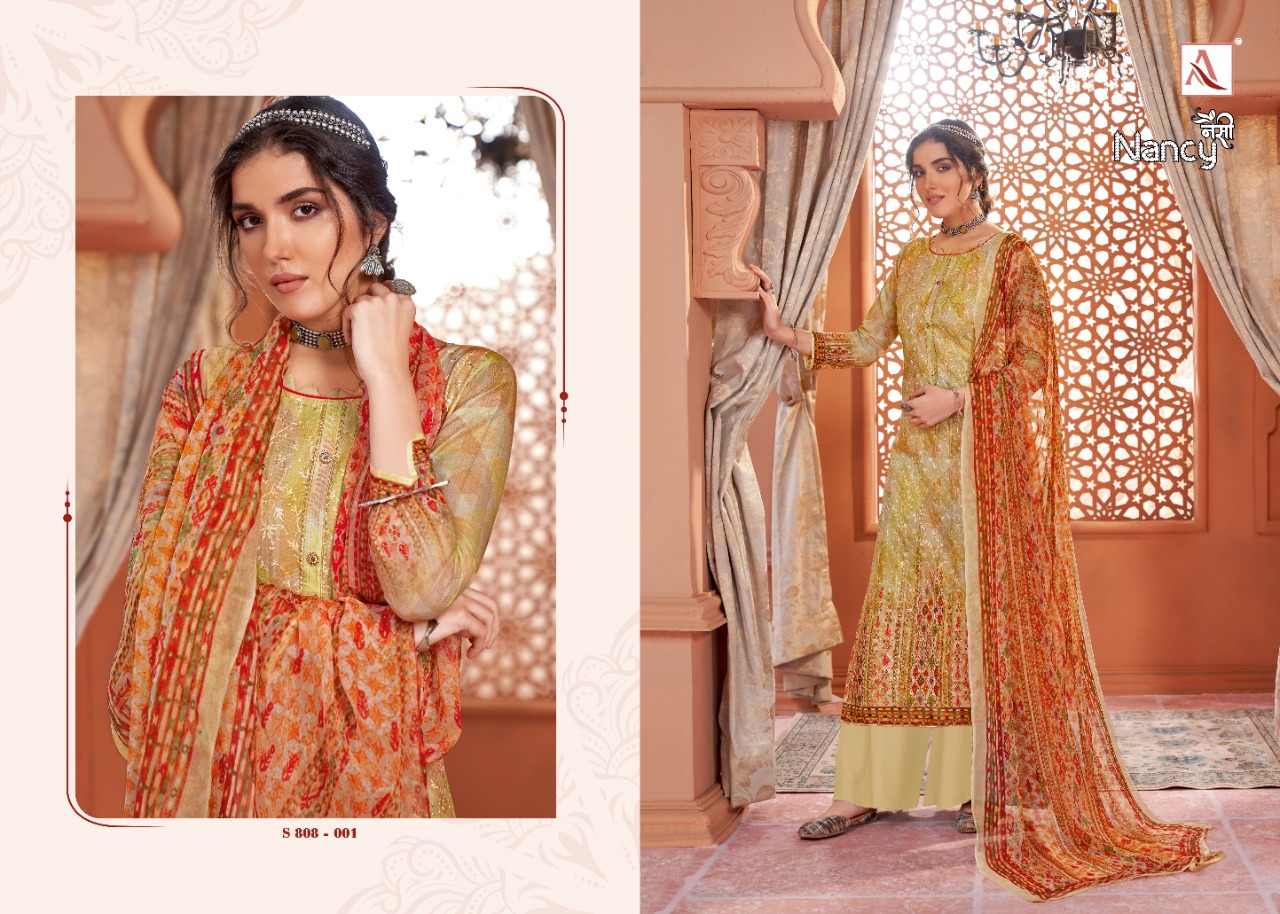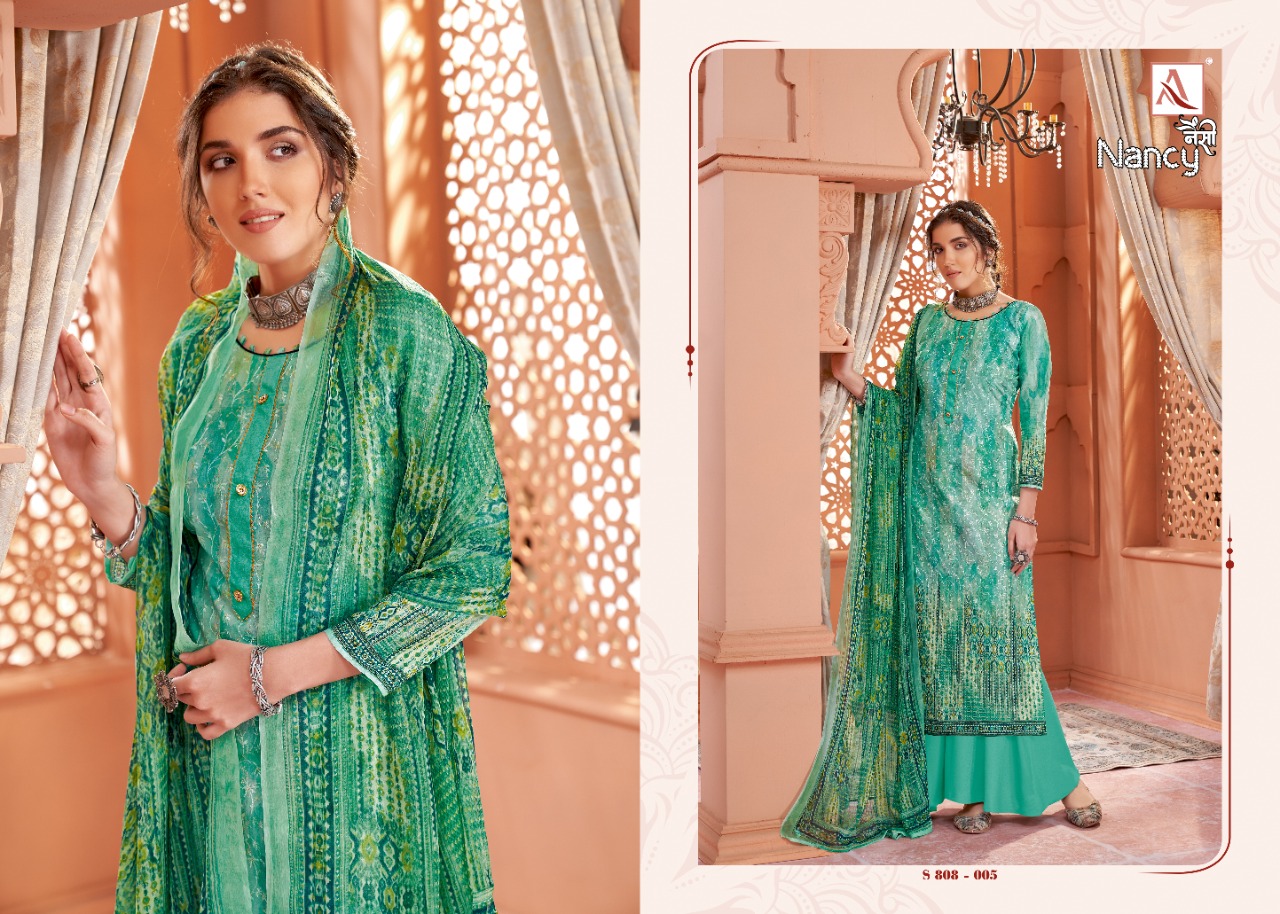 Buy Online Nancy By Alok Suit Wholesale Supplier Traders In Surat 8 Pcs of Full Catalogue at Wholesale Price. Looking for Nancy By Alok Suit Wholesale Supplier Traders In Surat Full Catalouge at Best Price? Buy Now Nancy By Alok Suit Wholesale Supplier Traders In Surat at Wholesale Rate of Rs 7288 with Total 8 Pcs from authroized dealer and supplier of Brand. Cost of Each piece is just only Rs 911 which is very low and affordable price to resale the product in your retail store ,This is Surat based Wholesale Supplier & Dealer of Brand. Click on Brand name to Know more about Brand's products.Call or Whatsapp on 9898838984 for booking or enquiry