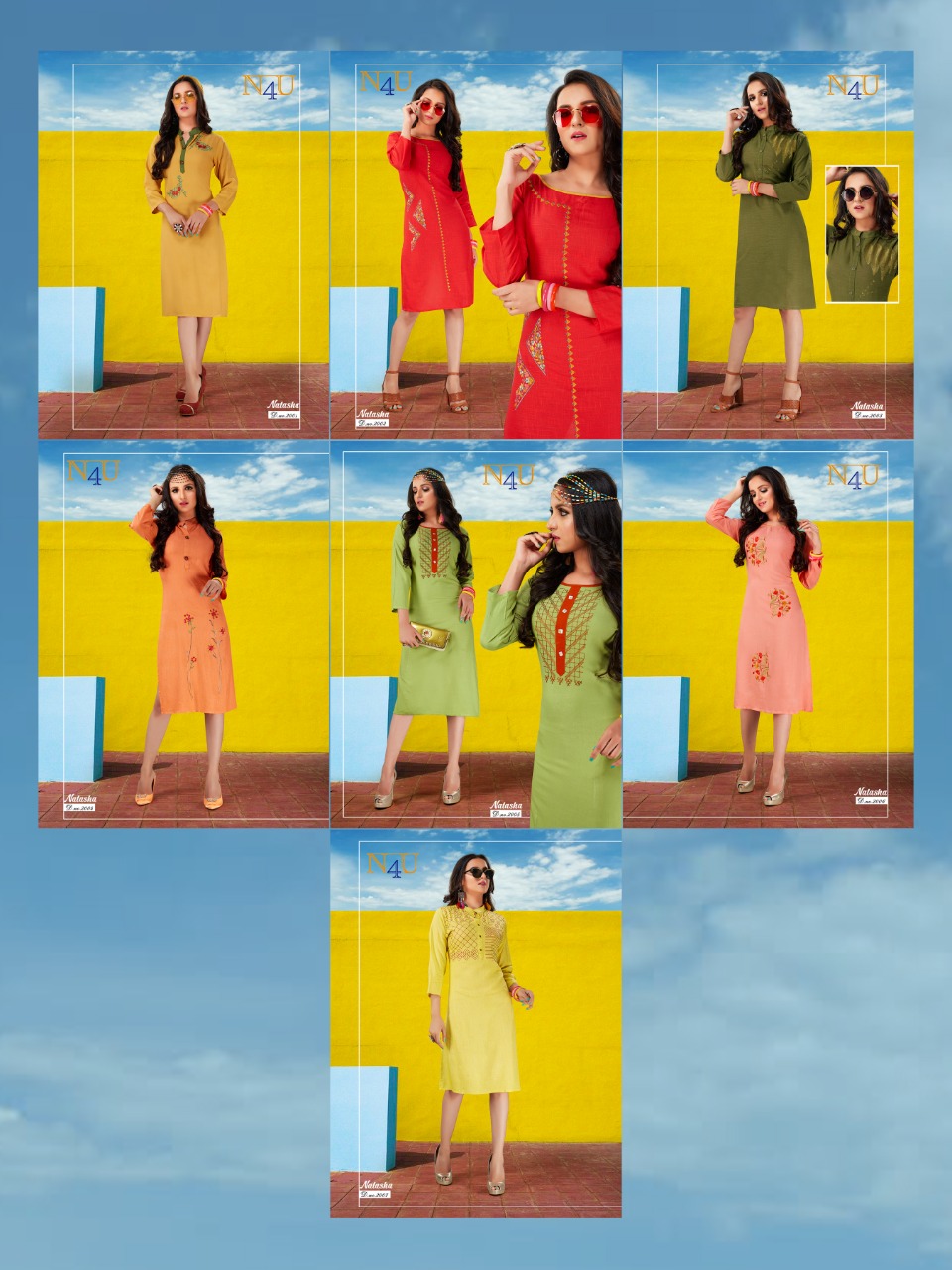 *NEHA FASHION* *N4U* Lunched new catlouge *NATASHA* ?:-Fabrics -Riyon with EMBROIDERY work *Size:,M, L, XL, 2XL * *RATE : /-2?9?9?* Per Pcs . Set To Set . Delivery- Running Gst 5%Extrs *7 BEAUTIFUL DESIGN ?Booking started from now... ?Order yours |