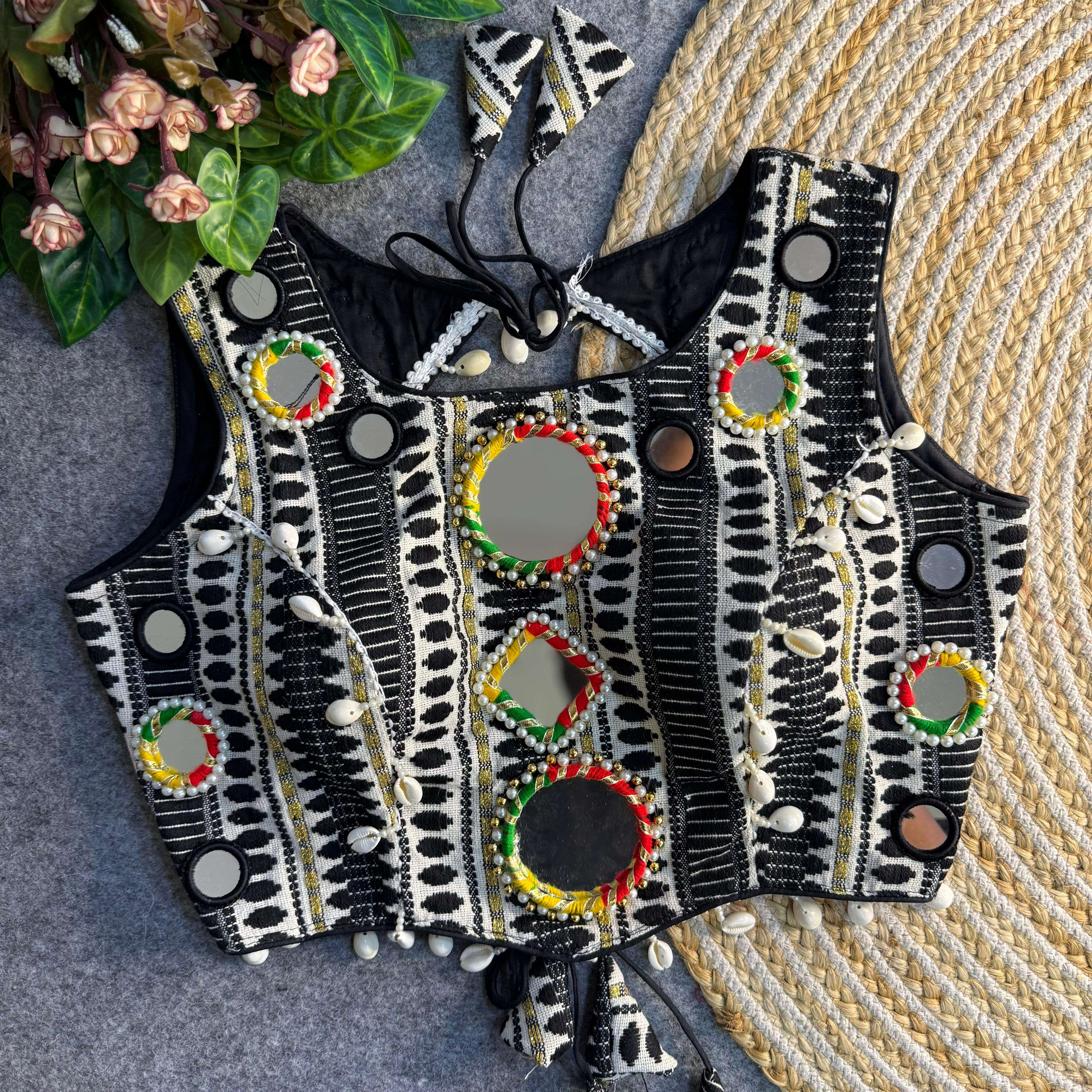 ❤️ NEW LAUNCH – NAVRATRI SPECIAL ❤️ ✨ REAL MIRROR + SHELL WORK | BACKLESS STYLE BLOUSE ✨