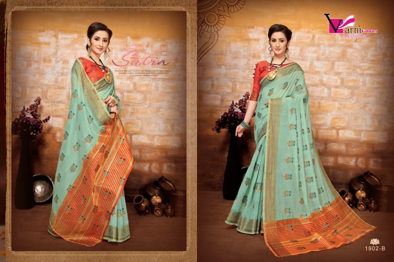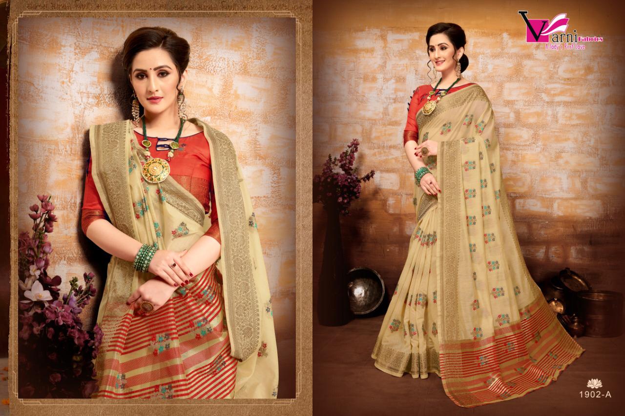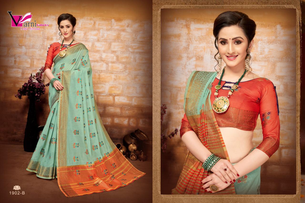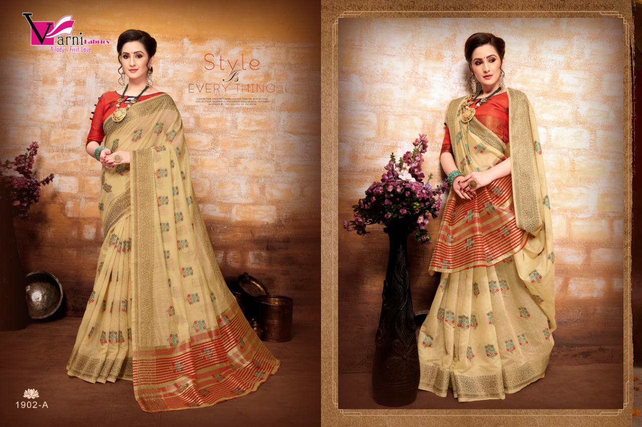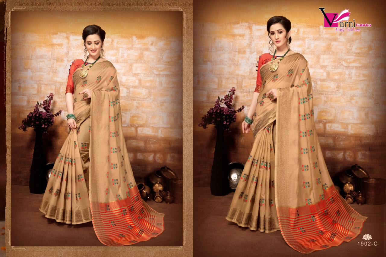 *New catalogue by Varni Fabrics* *Catalog Name : Nayantara silk Nx* *D. NO 1902 ORIGINAL + A / B / C* *D. NO 1903 ORIGINAL + A / B Colors* *Fabric : - Mina Art Silk* *7-Pic catalogue* *No Catalog Book, per pcs photo only* *? 650/-* *GST 5 Percent Extra* *SET OF 7 PCS* *Singles & Multiple pcs* *ALL DESIGNS Delivery From Today * |