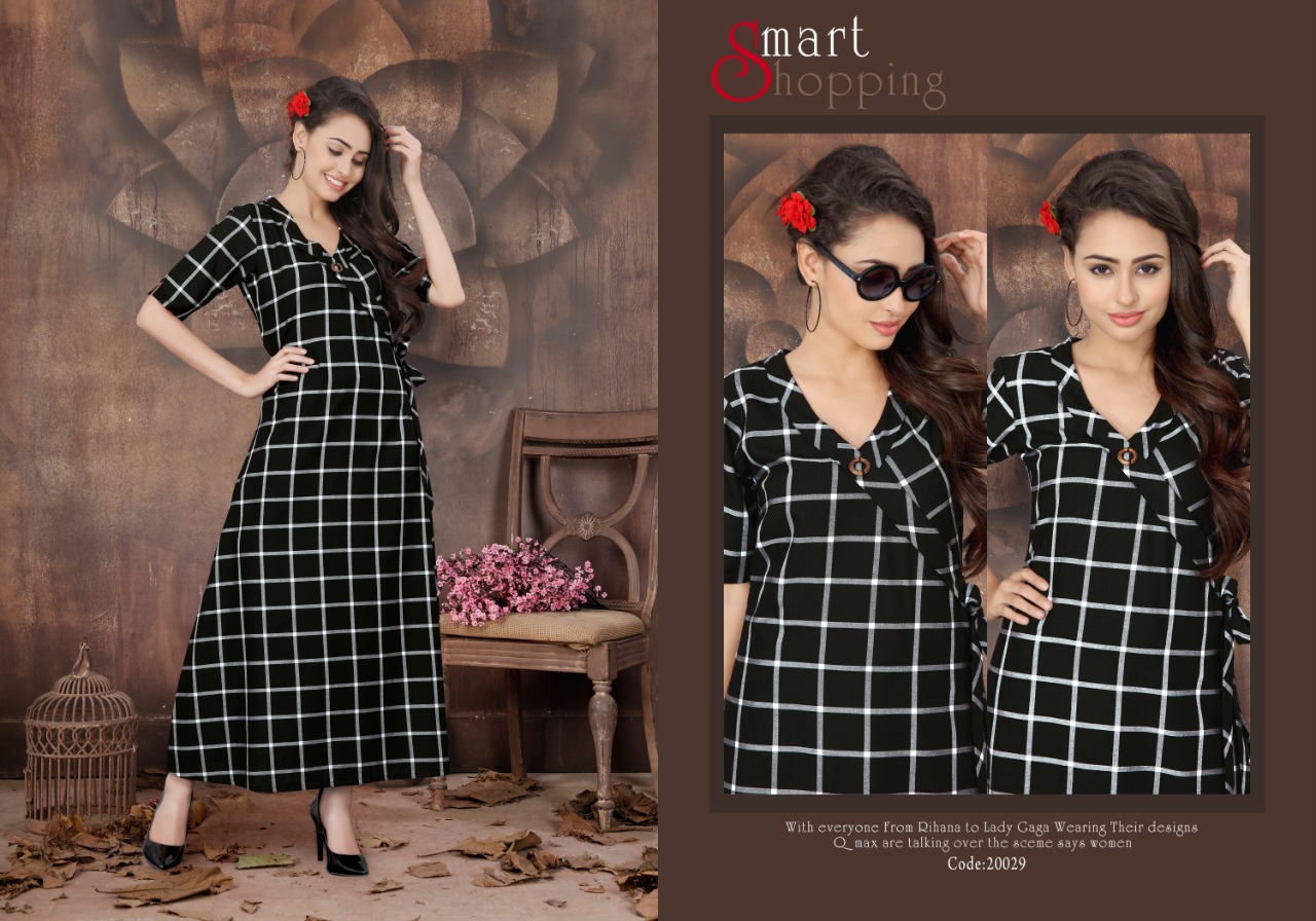 Catalouge name :- *NAYRA* Brand name :- *NEETI* Sizes:- XL, & XXL ONLY Fabric :- Heavy rayon checks and strip. Length :- 46"+ Rate:- 515.00 *Note :- 5 designs only* Regards Neeti creation |
