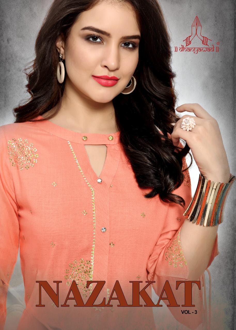 Nazakat Vol 3 By Dhanyawad Reyon Kurtis Wholesale Supplier And Dealer Surat