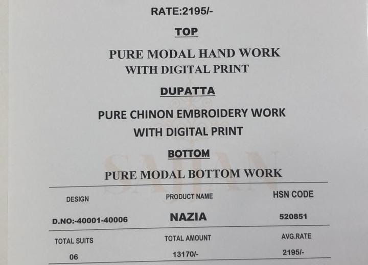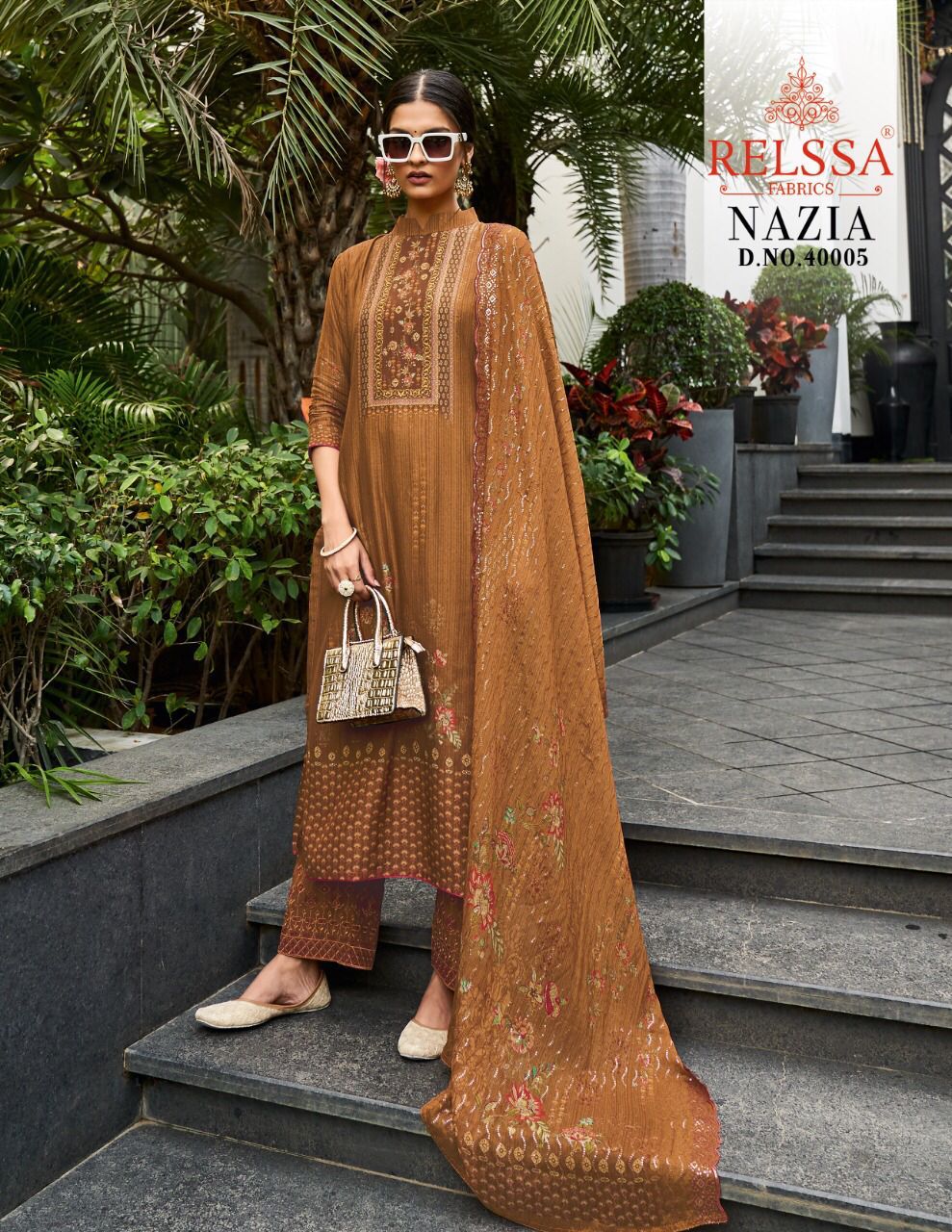 Buy Online Nazia By Relssa Pakistani Collection Manufacturer Traders And Dealer From India 6 Pcs of Full Catalogue at Wholesale Price. Looking for Nazia By Relssa Pakistani Collection Manufacturer Traders And Dealer From India Full Catalouge at Best Price? Buy Now Nazia By Relssa Pakistani Collection Manufacturer Traders And Dealer From India at Wholesale Rate of Rs 13170 with Total 6 Pcs from authroized dealer and supplier of Brand. Cost of Each piece is just only Rs 2195 which is very low and affordable price to resale the product in your retail store ,This is Surat based Wholesale Supplier & Dealer of Brand. Click on Brand name to Know more about Brand's products.Call or Whatsapp on 9898838984 for booking or enquiry