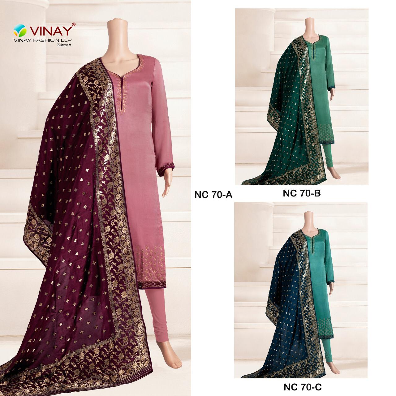 Buy Online Nc 70 Satin With Daimond Work And Banarasi Duppta By Vinay Designer Party Wear Suits Wholesale Supplier Gujarat 3 Pcs of Full Catalogue at Wholesale Price. Looking for Nc 70 Satin With Daimond Work And Banarasi Duppta By Vinay Designer Party Wear Suits Wholesale Supplier Gujarat Full Catalouge at Best Price? Buy Now Nc 70 Satin With Daimond Work And Banarasi Duppta By Vinay Designer Party Wear Suits Wholesale Supplier Gujarat at Wholesale Rate of Rs 4260 with Total 3 Pcs from authroized dealer and supplier of Brand. Cost of Each piece is just only Rs 1420 which is very low and affordable price to resale the product in your retail store ,This is Surat based Wholesale Supplier & Dealer of Brand. Click on Brand name to Know more about Brand's products.Call or Whatsapp on 9898838984 for booking or enquiry