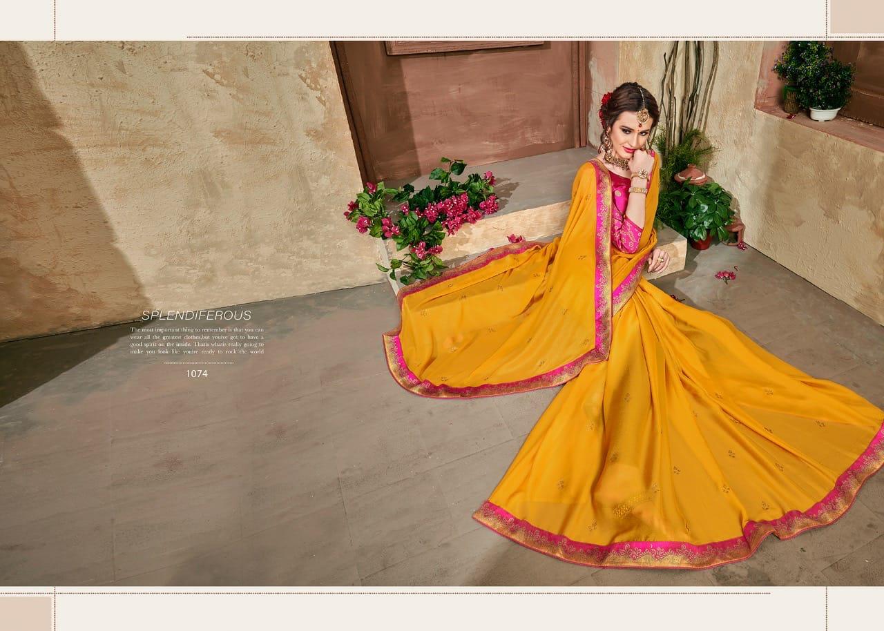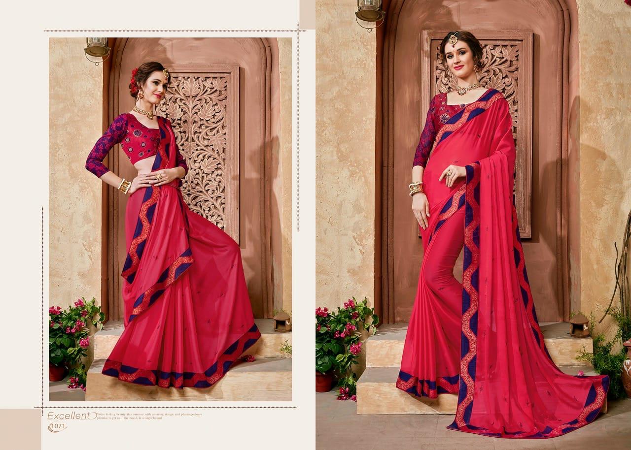 Buy Online Neha Vol 2 By Jaichitra 1071 Series Fancy P Moss Chiffon Party Wear Saree Catlog Wholesale Dealer Surat 10 Pcs of Full Catalogue at Wholesale Price. Looking for Neha Vol 2 By Jaichitra 1071 Series Fancy P Moss Chiffon Party Wear Saree Catlog Wholesale Dealer Surat Full Catalouge at Best Price? Buy Now Neha Vol 2 By Jaichitra 1071 Series Fancy P Moss Chiffon Party Wear Saree Catlog Wholesale Dealer Surat at Wholesale Rate of Rs 13750 with Total 10 Pcs from authroized dealer and supplier of BRAND'S Brand. Cost of Each piece is just only Rs 1375 which is very low and affordable price to resale the product in your retail store ,This is Surat based Wholesale Supplier & Dealer of BRAND'S Brand. Click on Brand name to Know more about BRAND'S Brand's products.Call or Whatsapp on 9898838984 for booking or enquiry