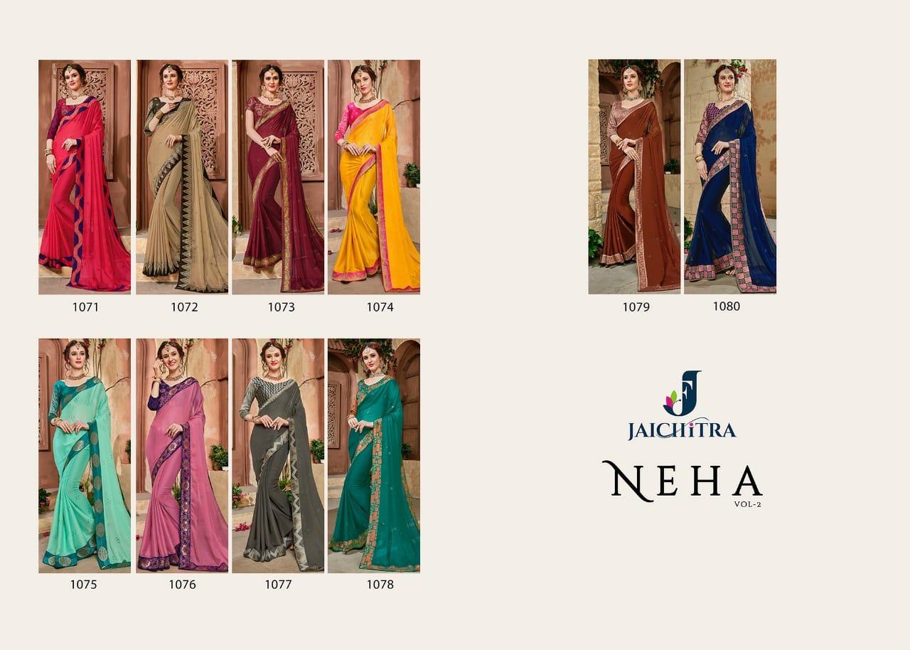 Neha Vol 2 By Jaichitra 1071 Series Fancy P Moss Chiffon Party Wear Saree Catlog Wholesale Dealer Surat