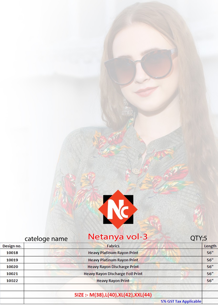 Netanya Vol 3 By Neeti Reyon Printed Kurtis Wholesale Supplier And Dealer India