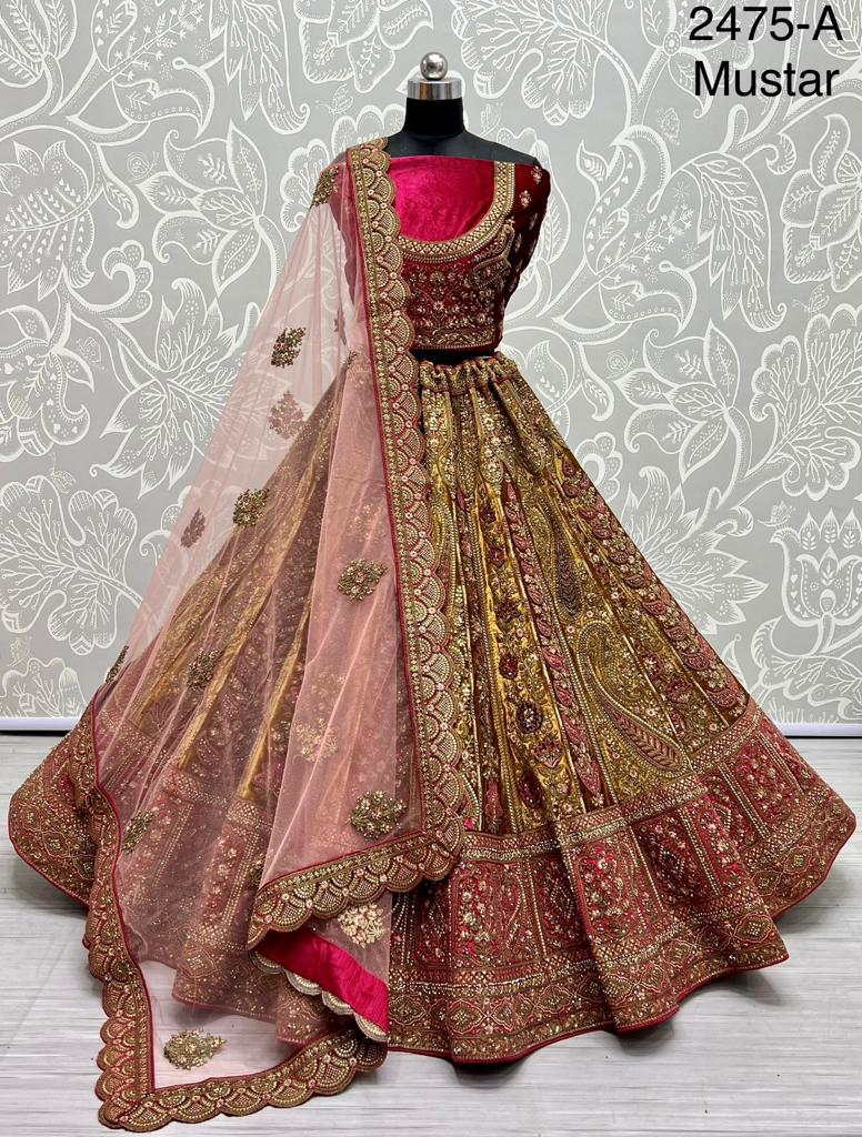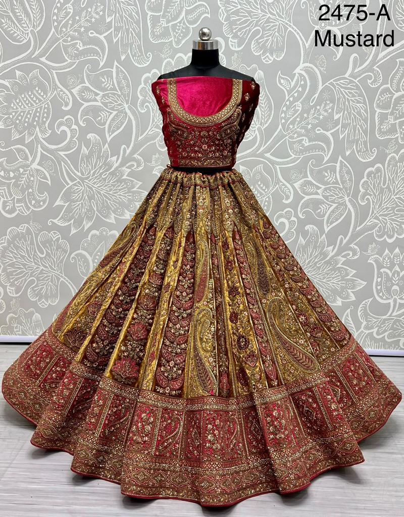 Buy Online New Design 2475 Heavy Dori Embroidery With Beautiful Crafted Velvet Work Patch Work Bridal Lehengacholi Manufacturing Surat 3 Pcs of Full Catalogue at Wholesale Price. Looking for New Design 2475 Heavy Dori Embroidery With Beautiful Crafted Velvet Work Patch Work Bridal Lehengacholi Manufacturing Surat Full Catalouge at Best Price? Buy Now New Design 2475 Heavy Dori Embroidery With Beautiful Crafted Velvet Work Patch Work Bridal Lehengacholi Manufacturing Surat at Wholesale Rate of Rs 47997 with Total 3 Pcs from authroized dealer and supplier of Brand. Cost of Each piece is just only Rs 15999 which is very low and affordable price to resale the product in your retail store ,This is Surat based Wholesale Supplier & Dealer of Brand. Click on Brand name to Know more about Brand's products.Call or Whatsapp on 9898838984 for booking or enquiry
