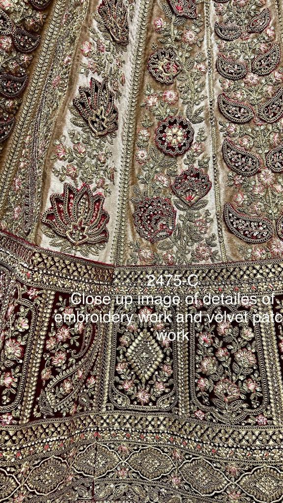 New Design 2475 Heavy Dori Embroidery With Beautiful Crafted Velvet Work Patch Work Bridal Lehengacholi Manufacturing Surat