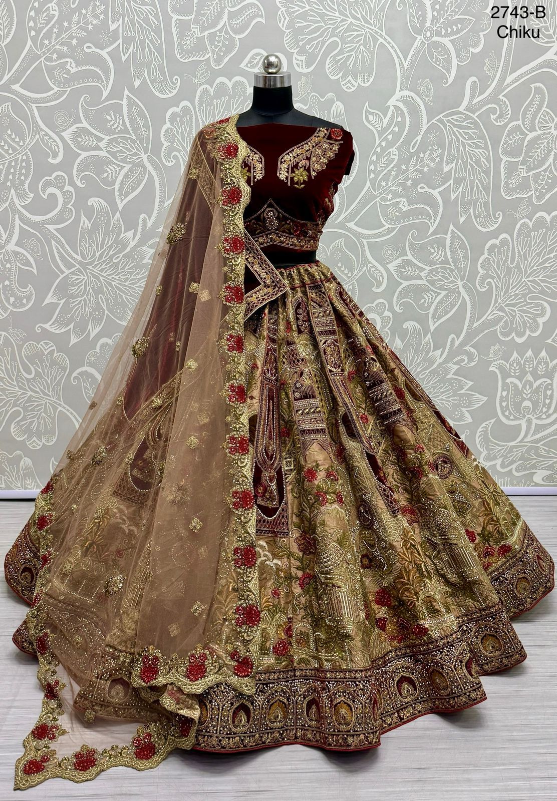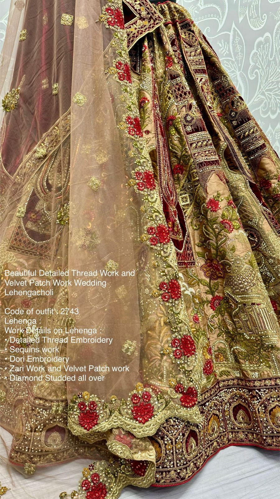 New Design 2743 Beutiful Detailed Thread Work Velvet Patch Work Wedding Lehenga Choli