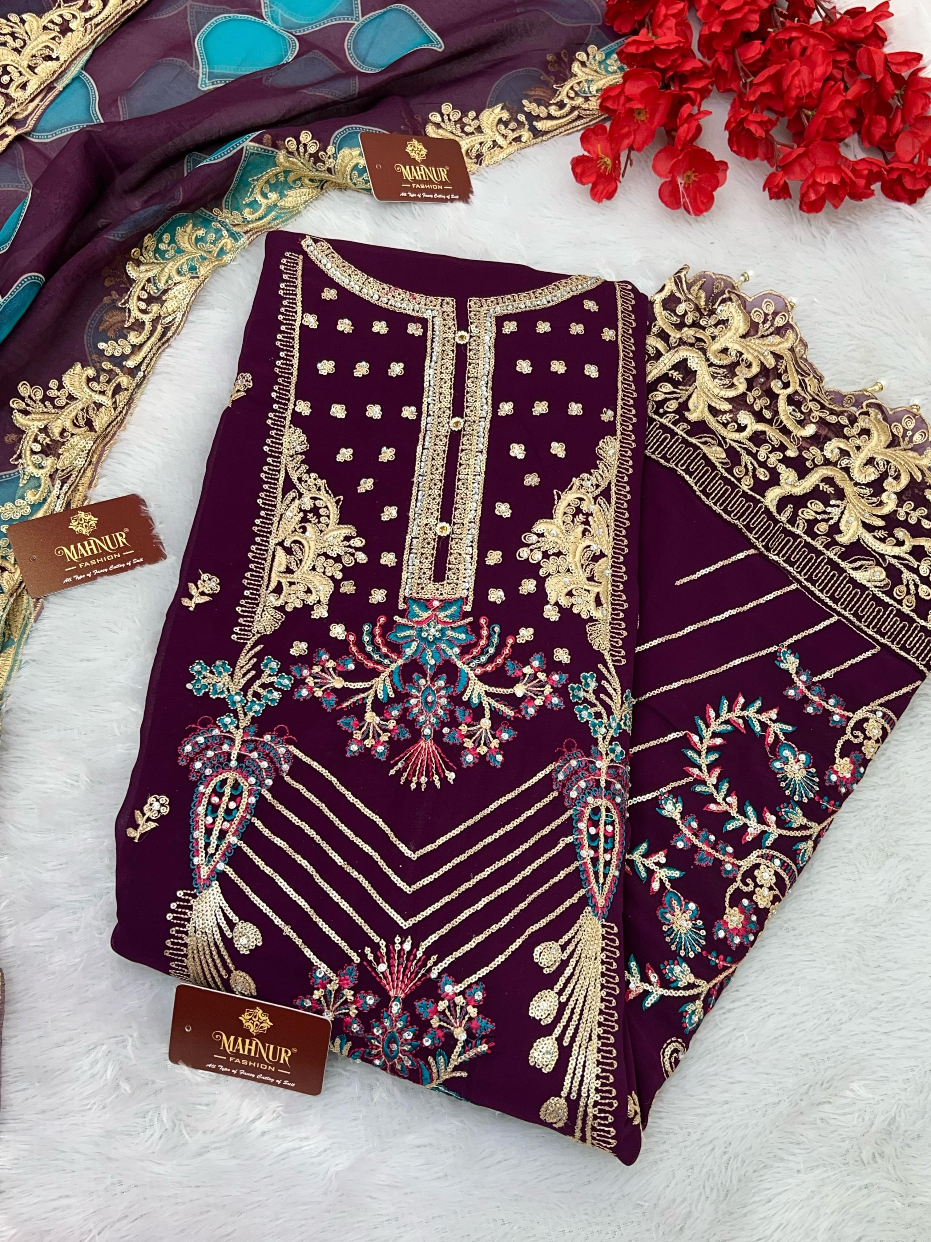 New Design M 101 By Mahnur Fashion Georgette Embroidered Collection Manufacturer Surat