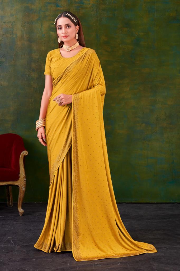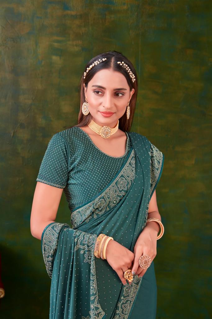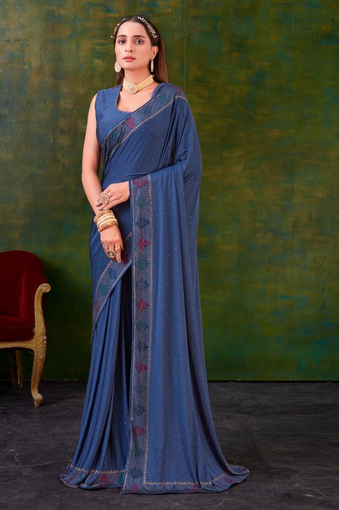 *REGULAR SAREE* *DESIGN NO* A203,A205,A206,A207, A209,A210 *BLOUSE* SWAROVSKI WORK (*UNSTITCHED BLOUSE*) *SAREE* IMPORTED FABRIC WITH SWAROVSKI WORK *6 COLOURS AVAILABLE* *RATE 2495+5*% GST SINGLE AVAIALABLE 100+Singles |