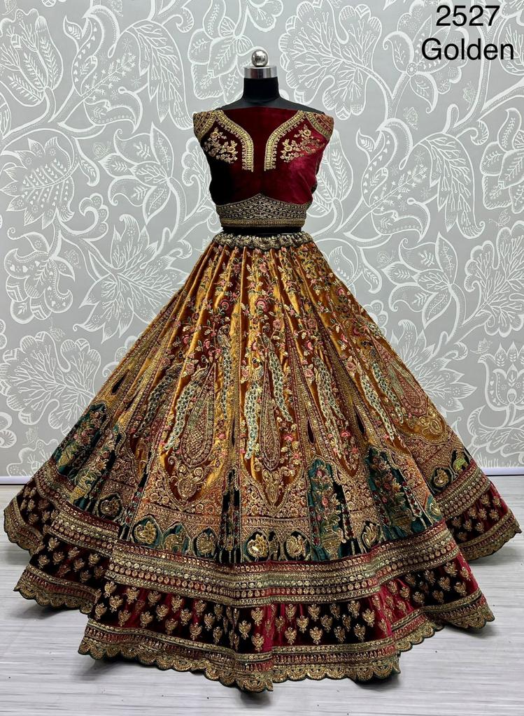 Buy Online New Exclusive 2527 Velvet Bridalwear Golden Color Designer Double Dupatta Bridal Lehenga Choli 1 Pcs of Full Catalogue at Wholesale Price. Looking for New Exclusive 2527 Velvet Bridalwear Golden Color Designer Double Dupatta Bridal Lehenga Choli Full Catalouge at Best Price? Buy Now New Exclusive 2527 Velvet Bridalwear Golden Color Designer Double Dupatta Bridal Lehenga Choli at Wholesale Rate of Rs 19999 with Total 1 Pcs from authroized dealer and supplier of Brand. Cost of Each piece is just only Rs 19999 which is very low and affordable price to resale the product in your retail store ,This is Surat based Wholesale Supplier & Dealer of Brand. Click on Brand name to Know more about Brand's products.Call or Whatsapp on 9898838984 for booking or enquiry