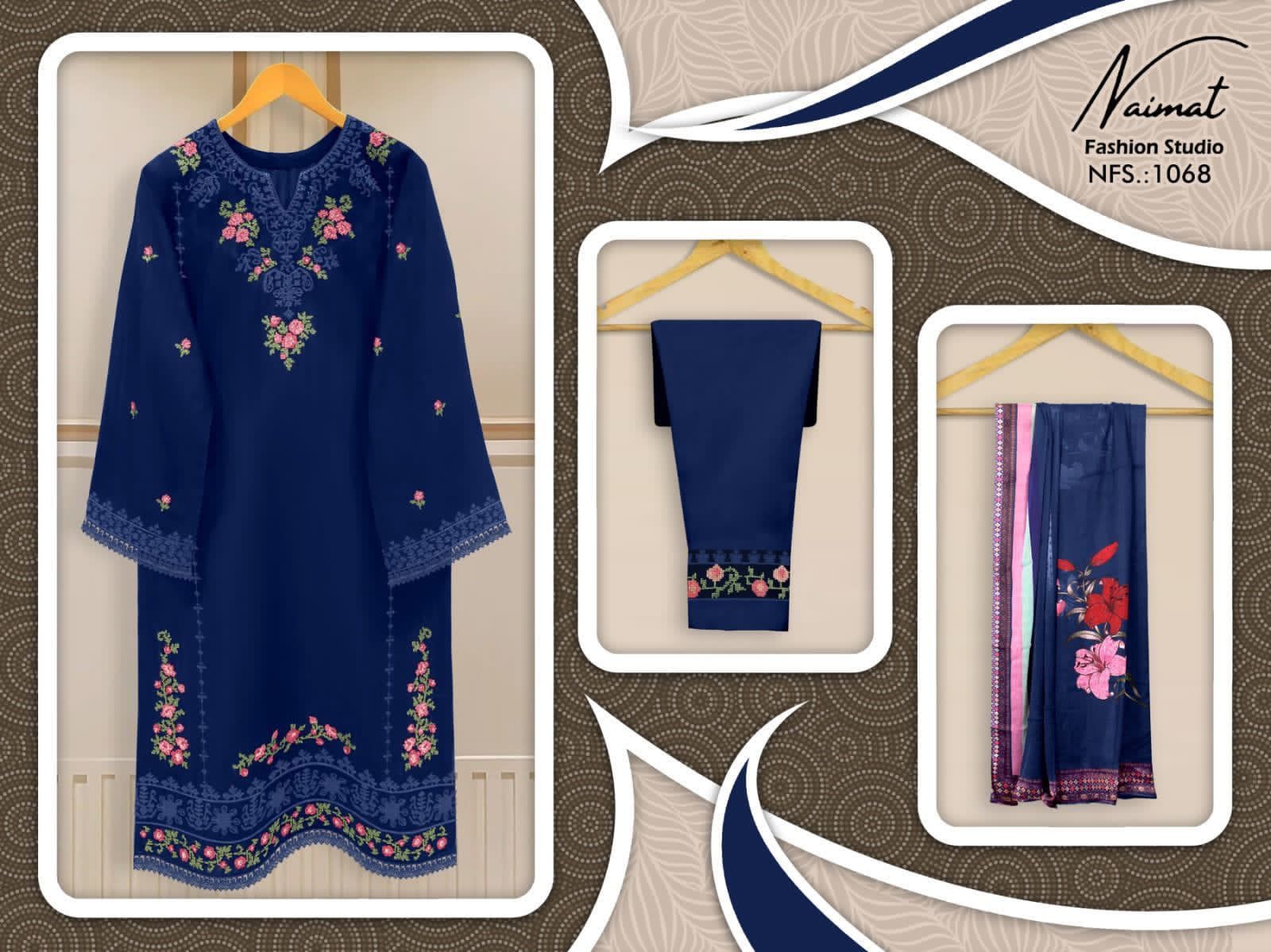 Buy Online Nfs 1068 Naimat Fashion Studio Laxurious Pret Collection Manufacturer Surat 3 Pcs of Full Catalogue at Wholesale Price. Looking for Nfs 1068 Naimat Fashion Studio Laxurious Pret Collection Manufacturer Surat Full Catalouge at Best Price? Buy Now Nfs 1068 Naimat Fashion Studio Laxurious Pret Collection Manufacturer Surat at Wholesale Rate of Rs 4200 with Total 3 Pcs from authroized dealer and supplier of Brand. Cost of Each piece is just only Rs 1400 which is very low and affordable price to resale the product in your retail store ,This is Surat based Wholesale Supplier & Dealer of Brand. Click on Brand name to Know more about Brand's products.Call or Whatsapp on 9898838984 for booking or enquiry
