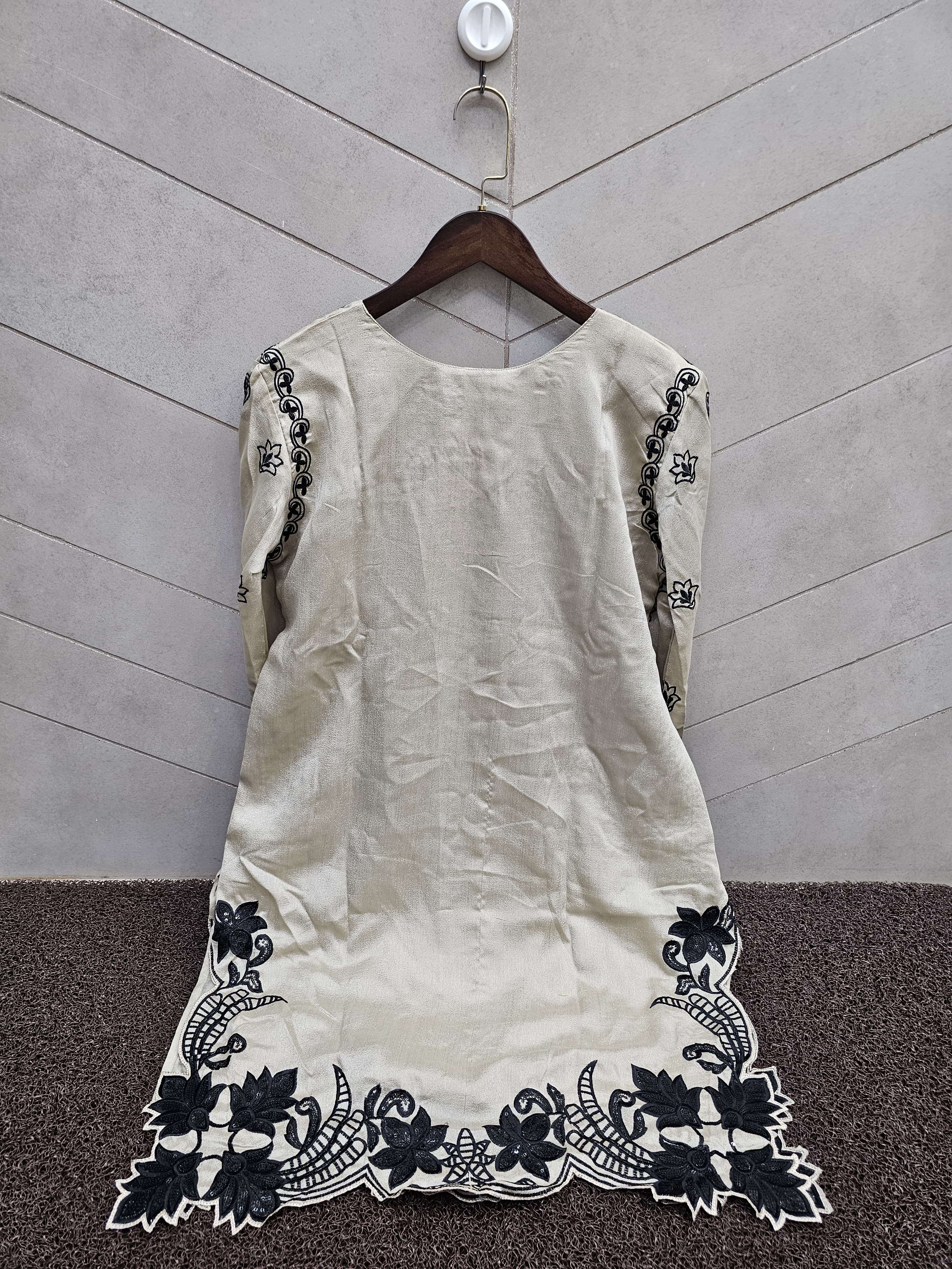 *(NFS-1170)* ➖➖➖➖➖➖➖ ✨ by *Naimat Fashoin Studio*✨ ➖➖➖➖➖➖➖➖ ❤️ *Description*❤️ 〰〰〰〰〰〰〰 *Designer Tunic Embellished with beautiful embroidery in top and slive & paired with Classic Stylish Farshi pants with Embroidery Petch & with Fancy Embroidery Dupatta*