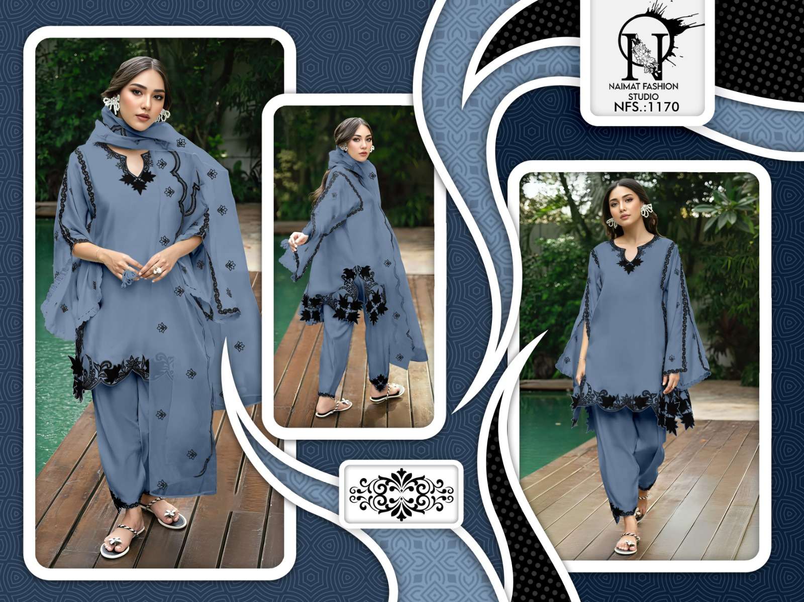 Buy Online NFS 1170 by Naimat Fashoin Studio kurti collection manufacturers surat 2 Pcs of Full Catalogue at Wholesale Price. Looking for NFS 1170 by Naimat Fashoin Studio kurti collection manufacturers surat Full Catalouge at Best Price? Buy Now NFS 1170 by Naimat Fashoin Studio kurti collection manufacturers surat at Wholesale Rate of Rs 2900 with Total 2 Pcs from authroized dealer and supplier of NAIMAT FASHION STUDIO Brand. Cost of Each piece is just only Rs 1450 which is very low and affordable price to resale the product in your retail store ,This is Surat based Wholesale Supplier & Dealer of NAIMAT FASHION STUDIO Brand. Click on Brand name to Know more about NAIMAT FASHION STUDIO Brand's products.Call or Whatsapp on 9898838984 for booking or enquiry