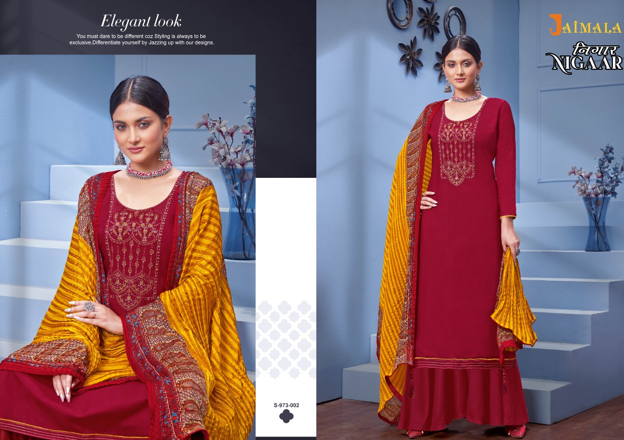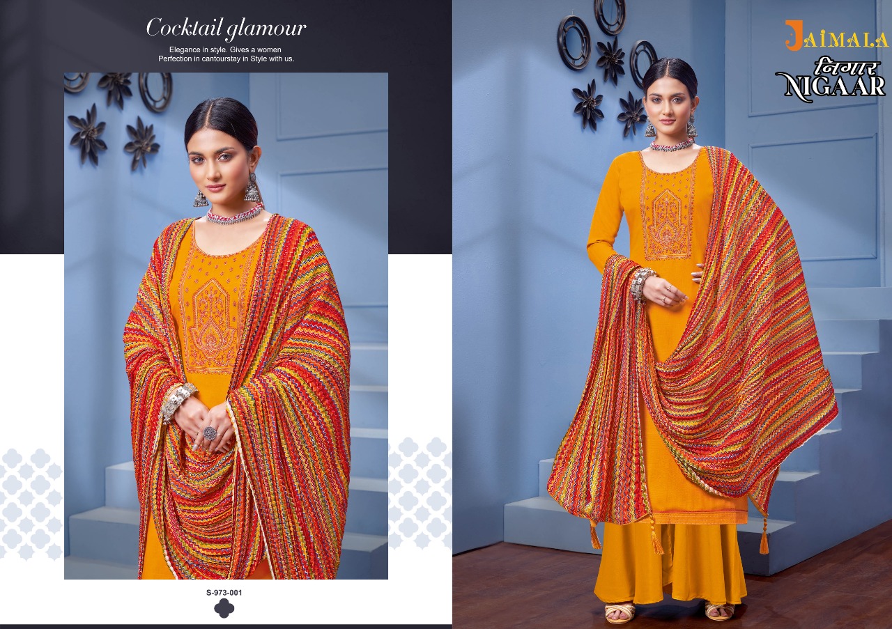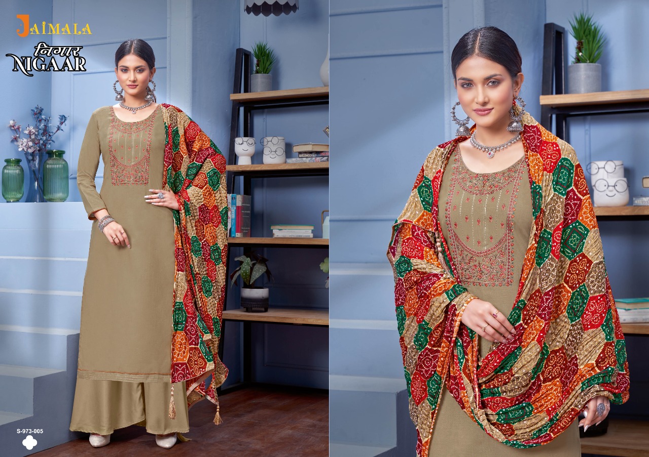 Buy Online Nigaar By Jalmala By Alok Suit Wholesale Supplier Traders In Surat 6 Pcs of Full Catalogue at Wholesale Price. Looking for Nigaar By Jalmala By Alok Suit Wholesale Supplier Traders In Surat Full Catalouge at Best Price? Buy Now Nigaar By Jalmala By Alok Suit Wholesale Supplier Traders In Surat at Wholesale Rate of Rs 3594 with Total 6 Pcs from authroized dealer and supplier of Brand. Cost of Each piece is just only Rs 599 which is very low and affordable price to resale the product in your retail store ,This is Surat based Wholesale Supplier & Dealer of Brand. Click on Brand name to Know more about Brand's products.Call or Whatsapp on 9898838984 for booking or enquiry
