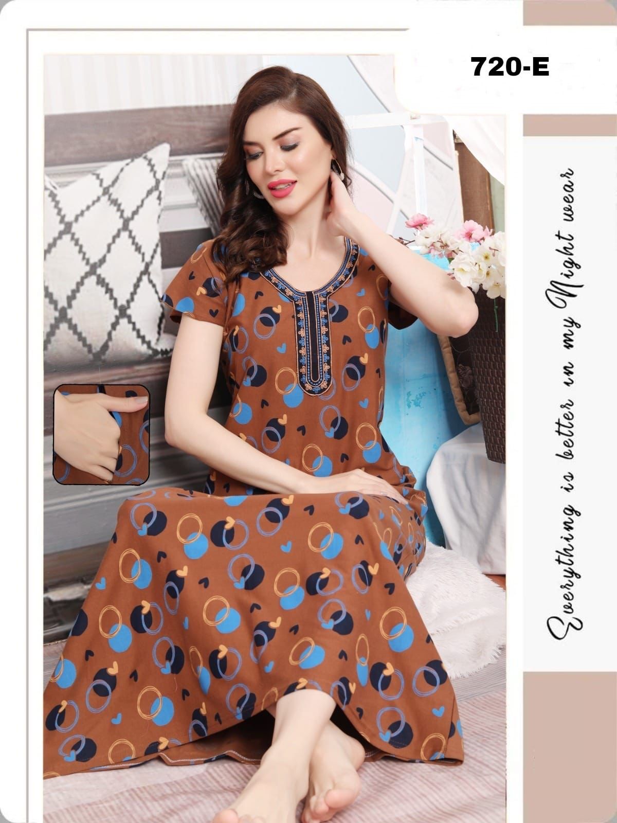 Buy Online Nighty Primium Series 720 Night Wear Collection 6 Pcs of Full Catalogue at Wholesale Price. Looking for Nighty Primium Series 720 Night Wear Collection Full Catalouge at Best Price? Buy Now Nighty Primium Series 720 Night Wear Collection at Wholesale Rate of Rs 3570 with Total 6 Pcs from authroized dealer and supplier of Brand. Cost of Each piece is just only Rs 595 which is very low and affordable price to resale the product in your retail store ,This is Surat based Wholesale Supplier & Dealer of Brand. Click on Brand name to Know more about Brand's products.Call or Whatsapp on 9898838984 for booking or enquiry