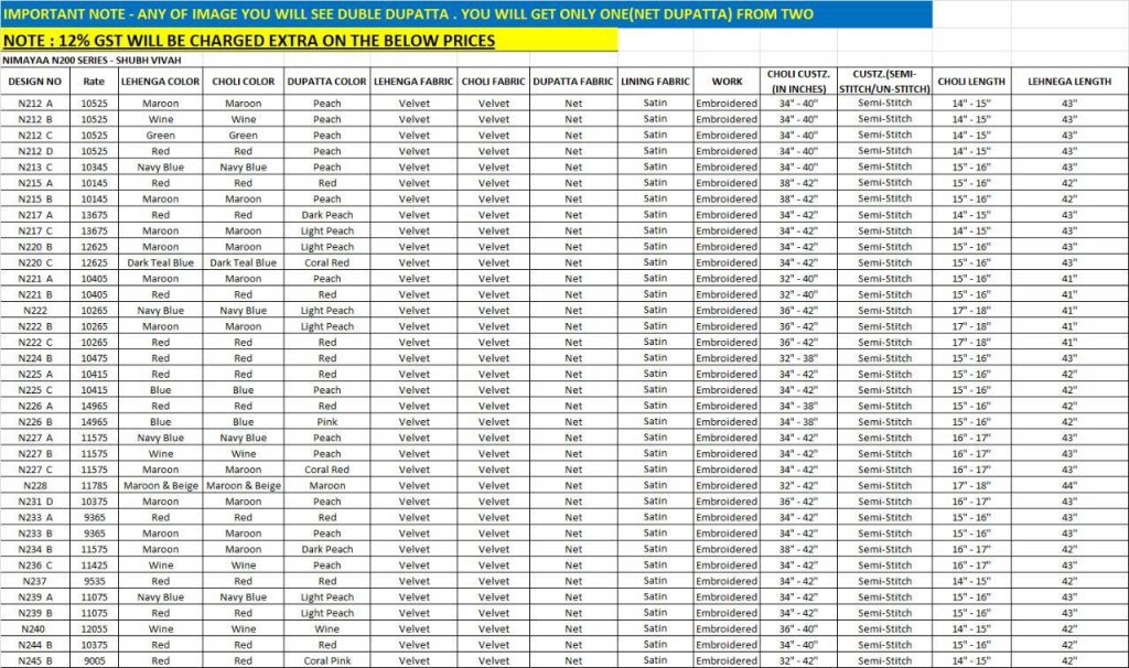 Buy Online Nimayaa By Mahotsav Series N200 Designer Party Wear Lehngas Wholesale Supplier And Dealer Surat 0 Pcs of Full Catalogue at Wholesale Price. Looking for Nimayaa By Mahotsav Series N200 Designer Party Wear Lehngas Wholesale Supplier And Dealer Surat Full Catalouge at Best Price? Buy Now Nimayaa By Mahotsav Series N200 Designer Party Wear Lehngas Wholesale Supplier And Dealer Surat at Wholesale Rate of Rs 0 with Total 0 Pcs from authroized dealer and supplier of Brand. Cost of Each piece is just only Rs 0 which is very low and affordable price to resale the product in your retail store ,This is Surat based Wholesale Supplier & Dealer of Brand. Click on Brand name to Know more about Brand's products.Call or Whatsapp on 9898838984 for booking or enquiry