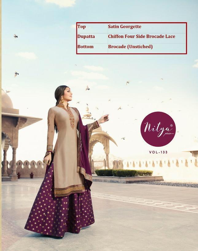 Buy Online Nitya Vol 133 By Lt Fabrics 3301 Series Designer Satin Georgette Garara Party Wear Suit Collection Wholesaler Surat 9 Pcs of Full Catalogue at Wholesale Price. Looking for Nitya Vol 133 By Lt Fabrics 3301 Series Designer Satin Georgette Garara Party Wear Suit Collection Wholesaler Surat Full Catalouge at Best Price? Buy Now Nitya Vol 133 By Lt Fabrics 3301 Series Designer Satin Georgette Garara Party Wear Suit Collection Wholesaler Surat at Wholesale Rate of Rs 17550 with Total 9 Pcs from authroized dealer and supplier of LT FABRICS Brand. Cost of Each piece is just only Rs 1950 which is very low and affordable price to resale the product in your retail store ,This is Surat based Wholesale Supplier & Dealer of LT FABRICS Brand. Click on Brand name to Know more about LT FABRICS Brand's products.Call or Whatsapp on 9898838984 for booking or enquiry