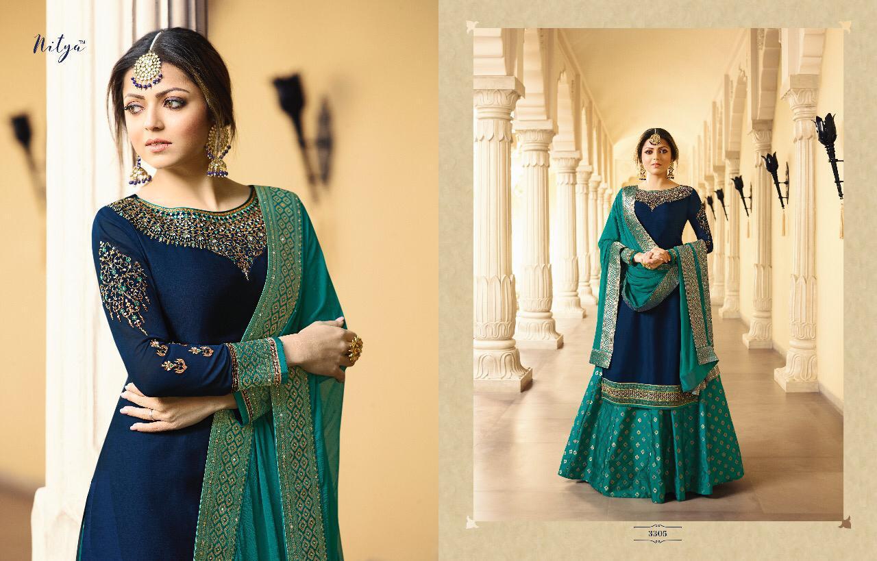 Nitya Vol 133 By Lt Fabrics 3301 Series Designer Satin Georgette Garara Party Wear Suit Collection Wholesaler Surat
