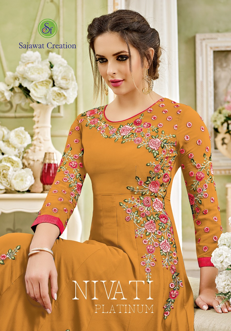 Buy Online Nivati Platinum By Sajawat Creation Georgette Designed Embroidered Party Wear Suits Wholesale Supplier And Dealer Gujarat 7 Pcs of Full Catalogue at Wholesale Price. Looking for Nivati Platinum By Sajawat Creation Georgette Designed Embroidered Party Wear Suits Wholesale Supplier And Dealer Gujarat Full Catalouge at Best Price? Buy Now Nivati Platinum By Sajawat Creation Georgette Designed Embroidered Party Wear Suits Wholesale Supplier And Dealer Gujarat at Wholesale Rate of Rs 11172 with Total 7 Pcs from authroized dealer and supplier of SAJAWAT Brand. Cost of Each piece is just only Rs 1596 which is very low and affordable price to resale the product in your retail store ,This is Surat based Wholesale Supplier & Dealer of SAJAWAT Brand. Click on Brand name to Know more about SAJAWAT Brand's products.Call or Whatsapp on 9898838984 for booking or enquiry