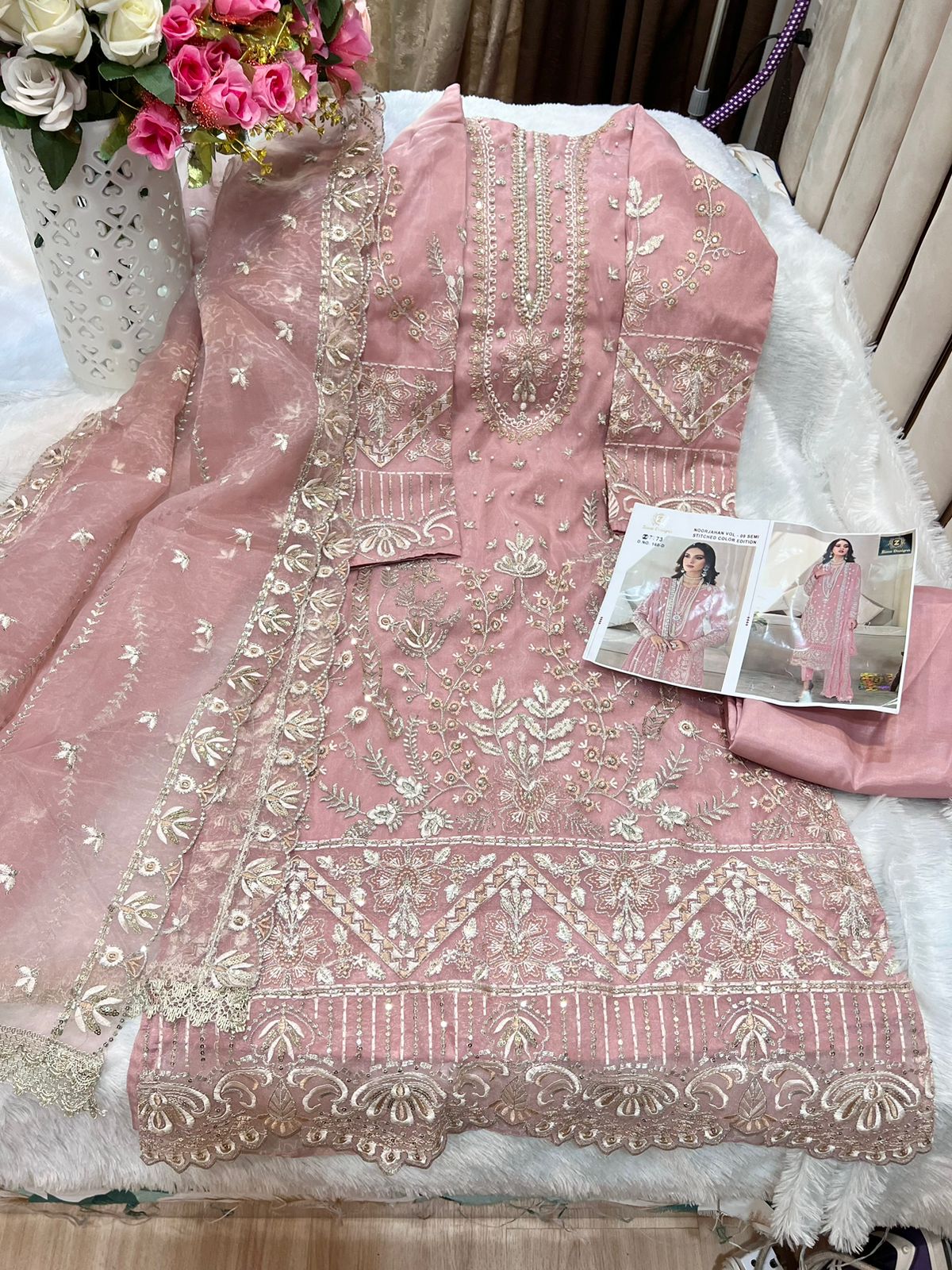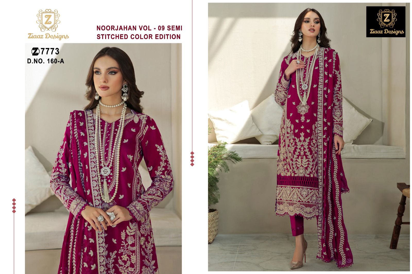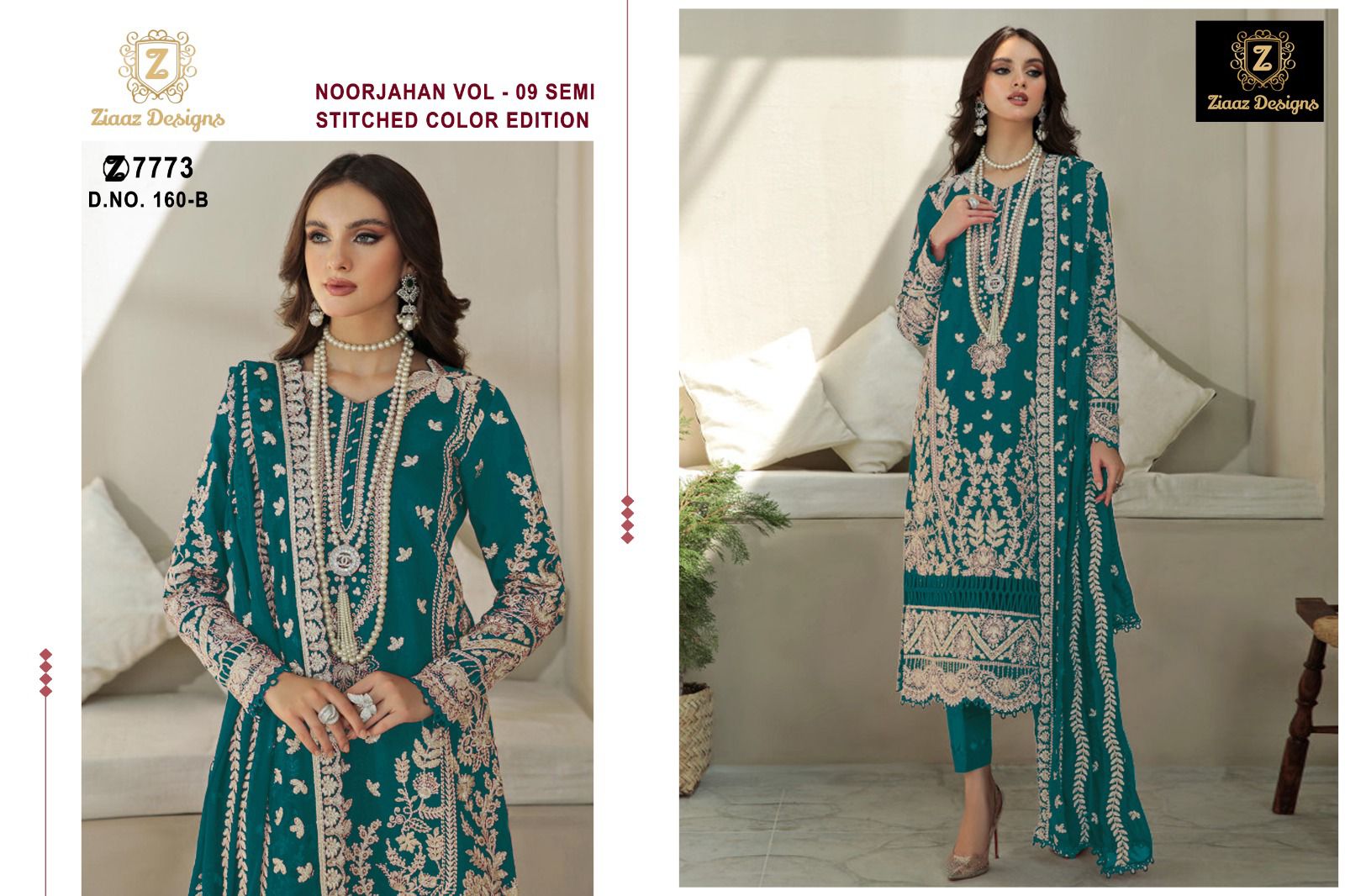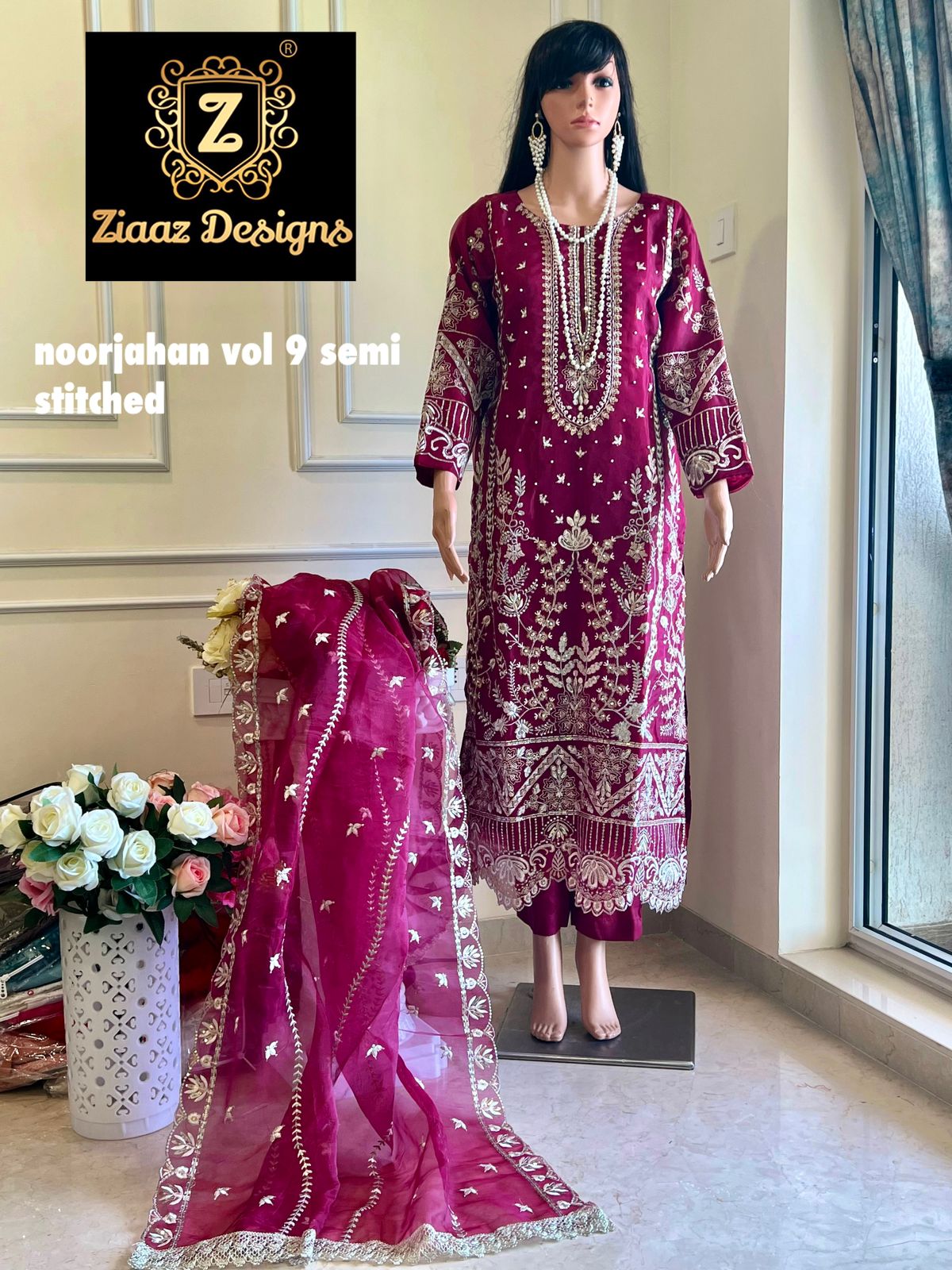 Buy Online Noor Jahan Vol 9 By Ziaaz Designs Organza Heavy Work Pakistani Suits 4 Pcs of Full Catalogue at Wholesale Price. Looking for Noor Jahan Vol 9 By Ziaaz Designs Organza Heavy Work Pakistani Suits Full Catalouge at Best Price? Buy Now Noor Jahan Vol 9 By Ziaaz Designs Organza Heavy Work Pakistani Suits at Wholesale Rate of Rs 5000 with Total 4 Pcs from authroized dealer and supplier of Brand. Cost of Each piece is just only Rs 1250 which is very low and affordable price to resale the product in your retail store ,This is Surat based Wholesale Supplier & Dealer of Brand. Click on Brand name to Know more about Brand's products.Call or Whatsapp on 9898838984 for booking or enquiry