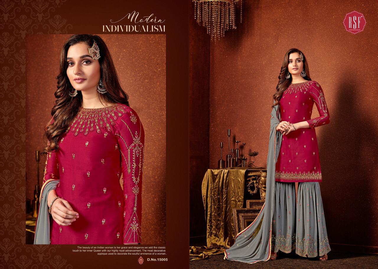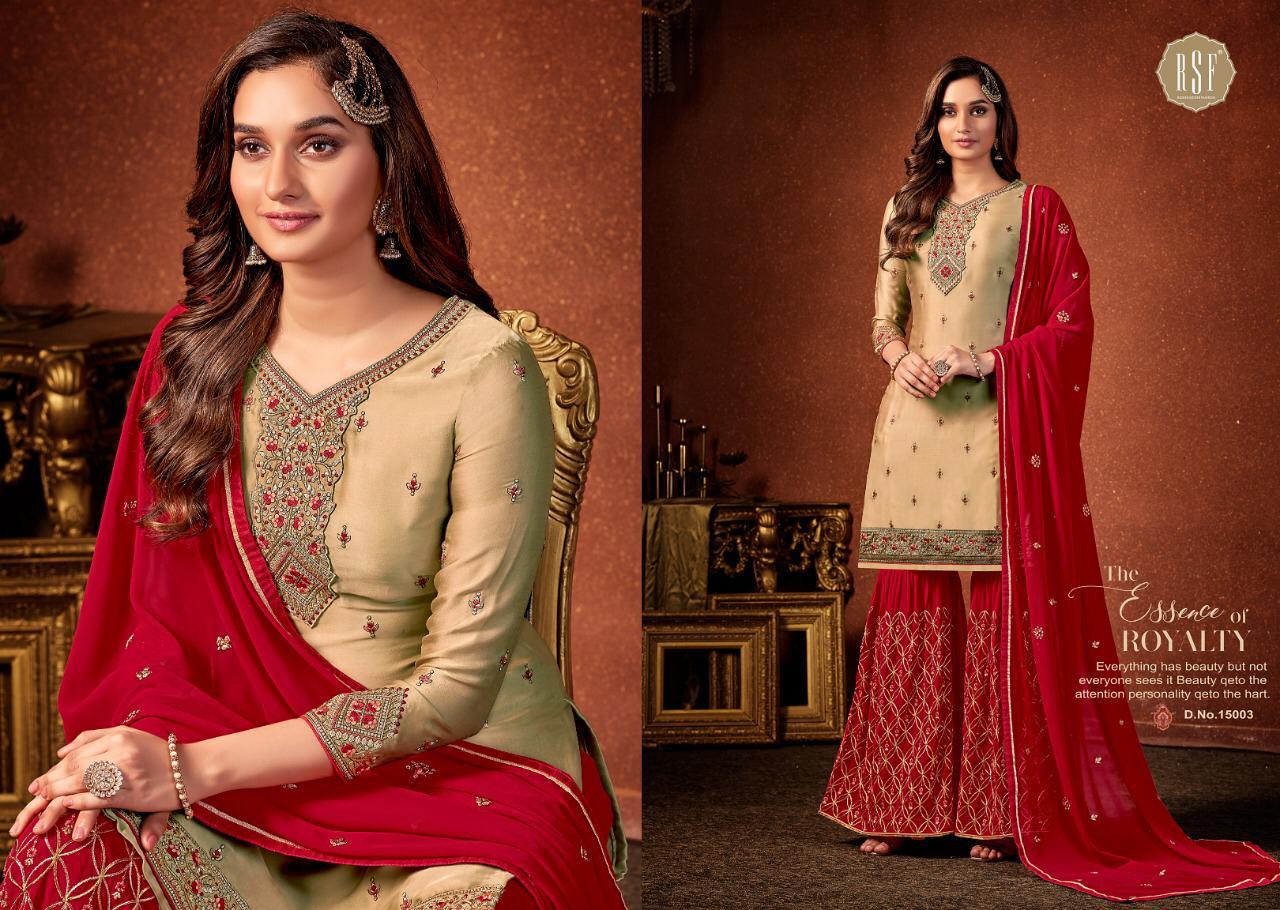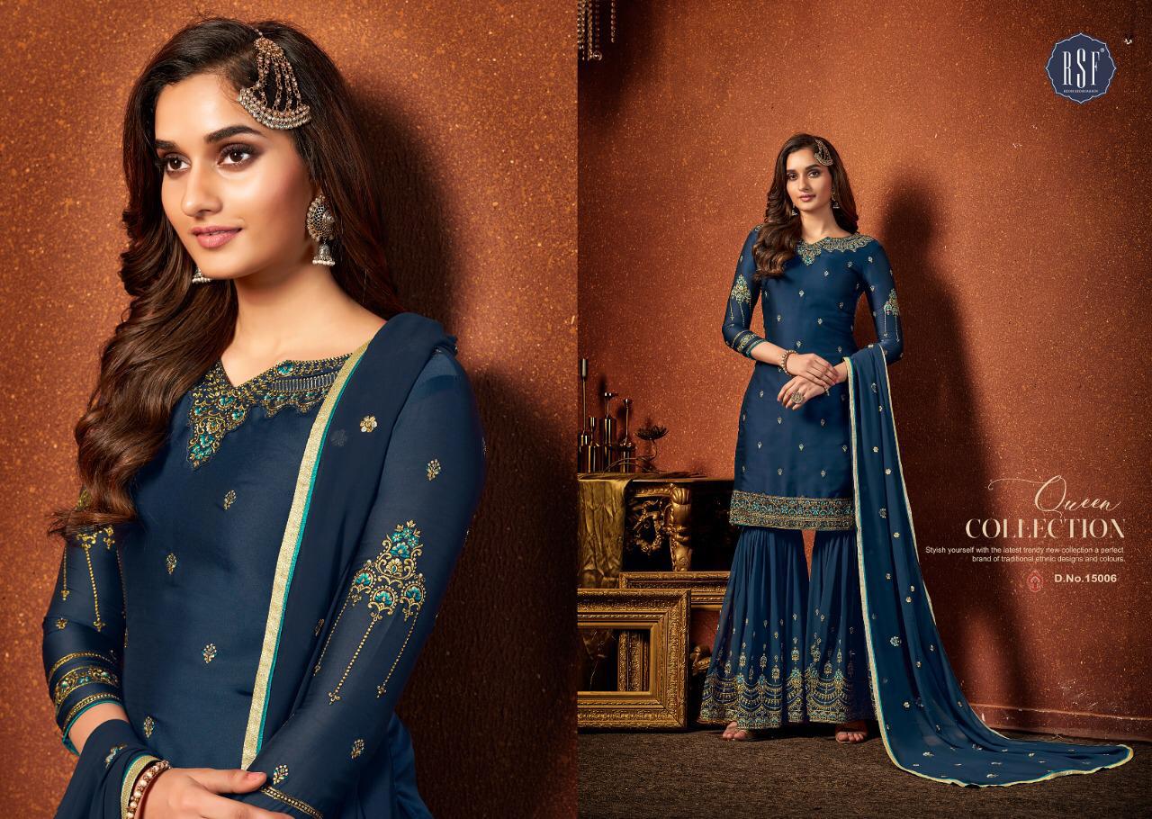 Buy Online Noorjahan Sarara By Rsf Series 15001 To 15006 Georgette Satin Embroidered Designer Party Wear Suits Wholesale Supplier And Dealer Gujarat 6 Pcs of Full Catalogue at Wholesale Price. Looking for Noorjahan Sarara By Rsf Series 15001 To 15006 Georgette Satin Embroidered Designer Party Wear Suits Wholesale Supplier And Dealer Gujarat Full Catalouge at Best Price? Buy Now Noorjahan Sarara By Rsf Series 15001 To 15006 Georgette Satin Embroidered Designer Party Wear Suits Wholesale Supplier And Dealer Gujarat at Wholesale Rate of Rs 11970 with Total 6 Pcs from authroized dealer and supplier of RSF Brand. Cost of Each piece is just only Rs 1995 which is very low and affordable price to resale the product in your retail store ,This is Surat based Wholesale Supplier & Dealer of RSF Brand. Click on Brand name to Know more about RSF Brand's products.Call or Whatsapp on 9898838984 for booking or enquiry