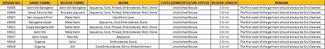 *PRICE :-* *43605-2525/-* *43606-2475/-* *43607-2055/-* *43608-2585/-* *43611-2315/-* *43612-2415/-* *43617-2095/-* *43618-1785/-* *43619-1635/-* +*5% GST EXTRA*