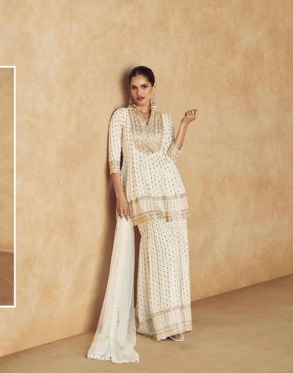AASHIRWAD CREATION PRESENT NEW FREE SIZE STITCHED CATLOG ?NUSRAT ? ?FABRIC DETAILS !!!! TOP-REAL GEORGETTE(Free size stitch ) PLAZZO-REAL GEORGETTE(free size stitch ) DUPTTA- PREMIUM NET RATE -2799 GST -12 PERCENT EXTRA DISPATCHING IN 3 DAYS !!! SINGLE AVAILABLE 100+ SINGLE |