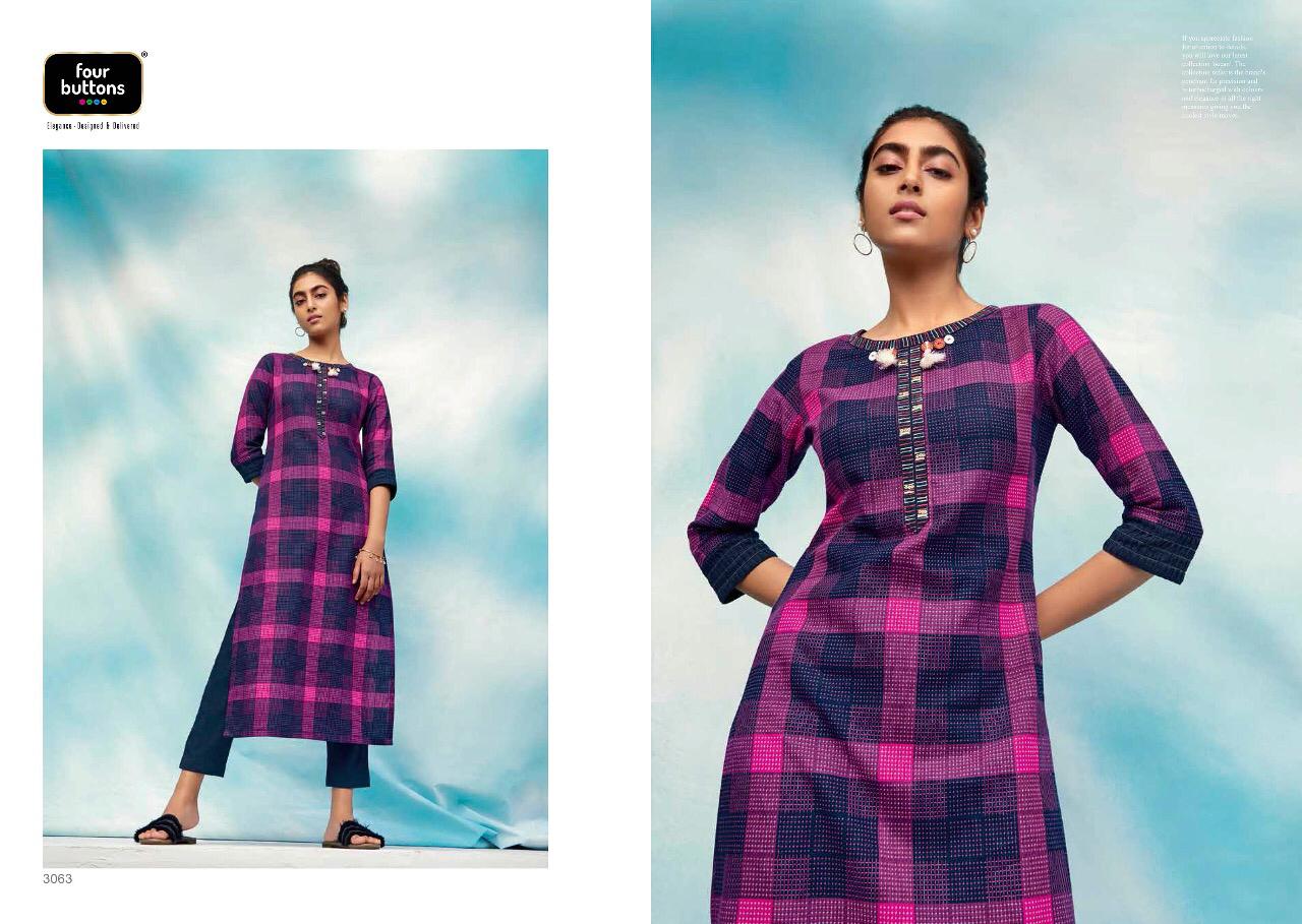Ocean By Four Buttons Cotton Kurtis Wholesale Supplier Surat