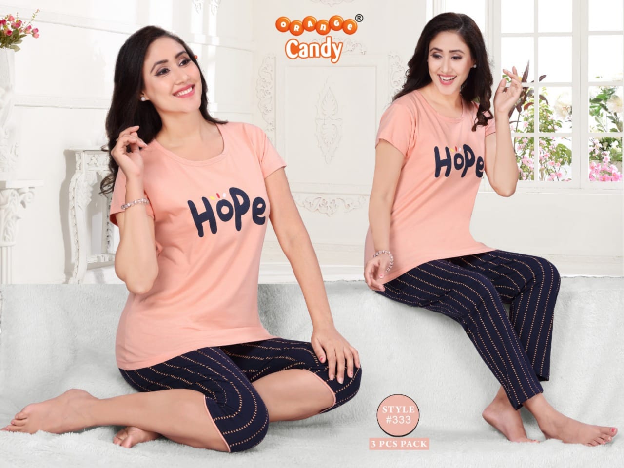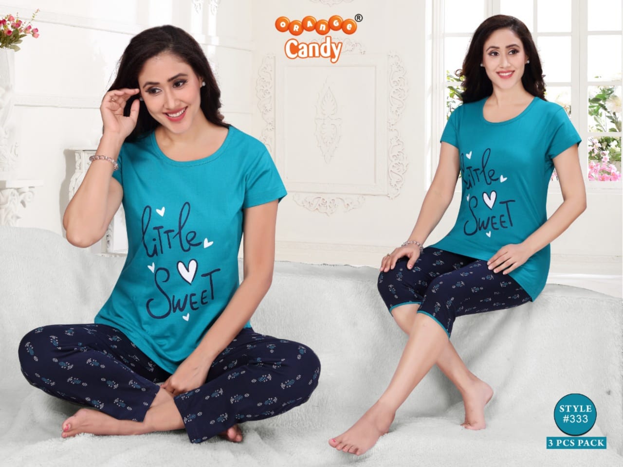 Buy Online Orange Candy 333 Cotton Night Suit Wholesale Supplier Traders In Surat 6 Pcs of Full Catalogue at Wholesale Price. Looking for Orange Candy 333 Cotton Night Suit Wholesale Supplier Traders In Surat Full Catalouge at Best Price? Buy Now Orange Candy 333 Cotton Night Suit Wholesale Supplier Traders In Surat at Wholesale Rate of Rs 3120 with Total 6 Pcs from authroized dealer and supplier of Brand. Cost of Each piece is just only Rs 520 which is very low and affordable price to resale the product in your retail store ,This is Surat based Wholesale Supplier & Dealer of Brand. Click on Brand name to Know more about Brand's products.Call or Whatsapp on 9898838984 for booking or enquiry