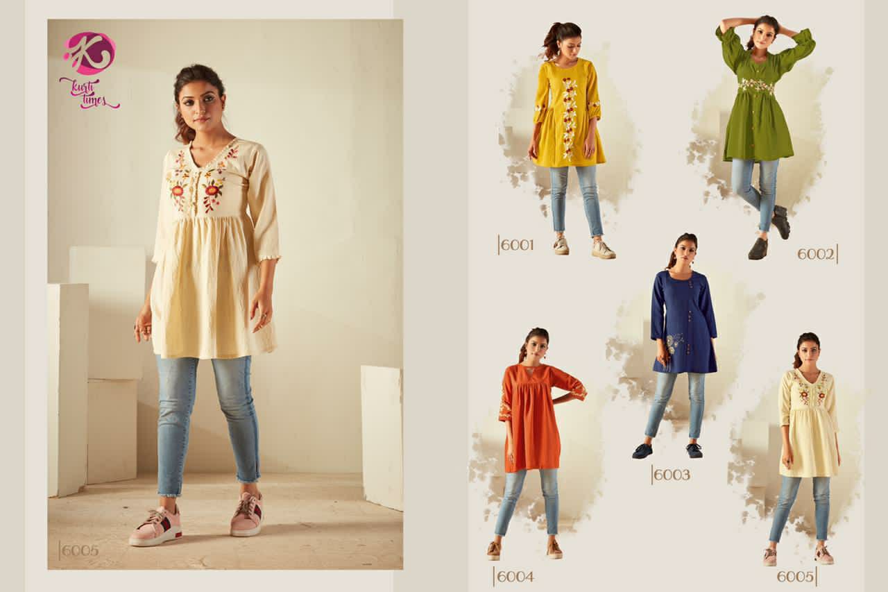 *Brand :* Kurti times *Catalog Name :* Orchid *Price :* ?535 *Piece :* 5 *Total Price :* 2675 ( GST Extra ) *Size :* S,M,L,XL *Fabric :* viscose *Availibility :* On Booking |