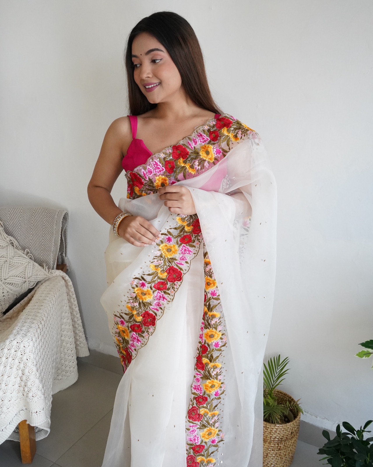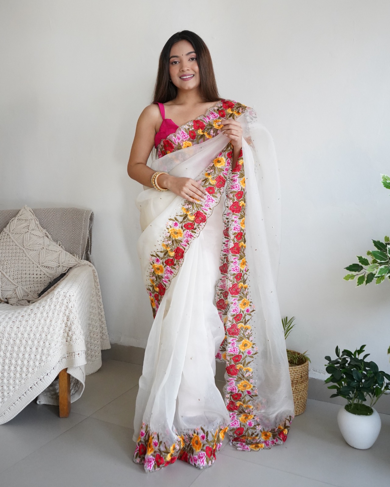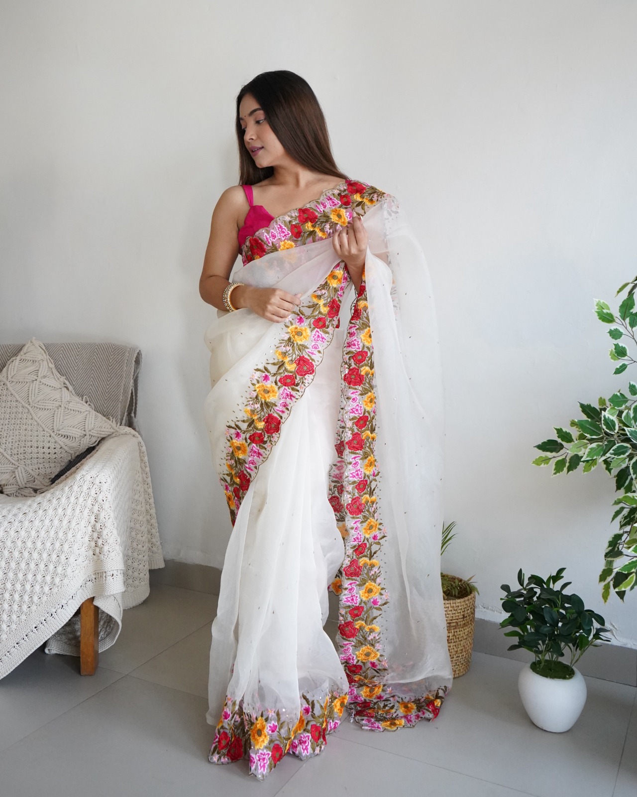 Organza New Catalog Vishakha Embroidery Work Sarees